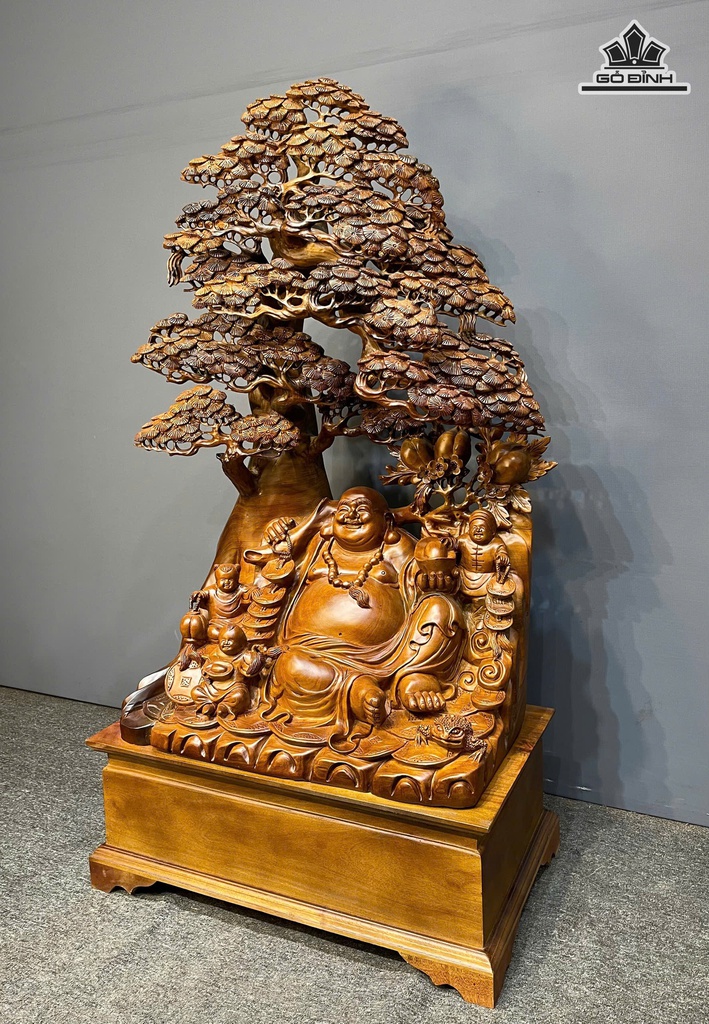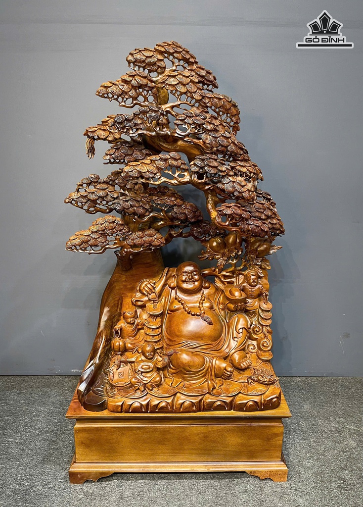 Tượng Phật Di Lặc Tam Phúc Gỗ Bách Xanh Cao Cả Kỷ 128 Ngang 70 Sâu 40 (cm) - Kỷ Cao 40