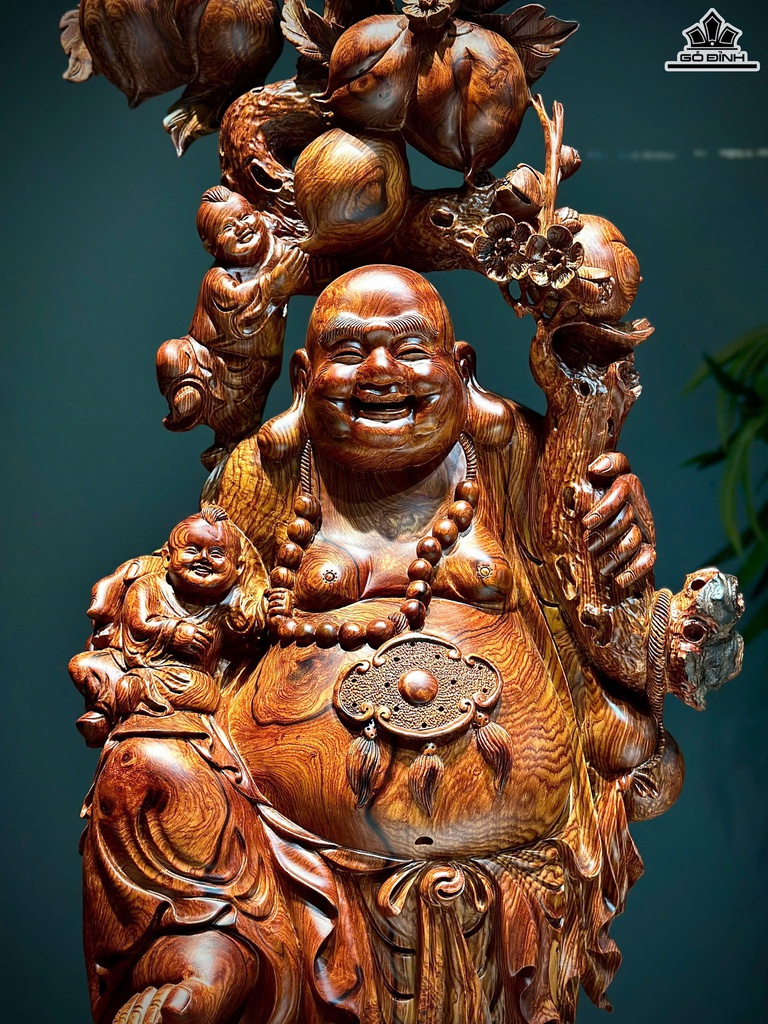 Tượng Phật Di Lặc Tam Phúc Gỗ Cẩm Cao 105 Ngang 50 Sâu 34 (cm)
