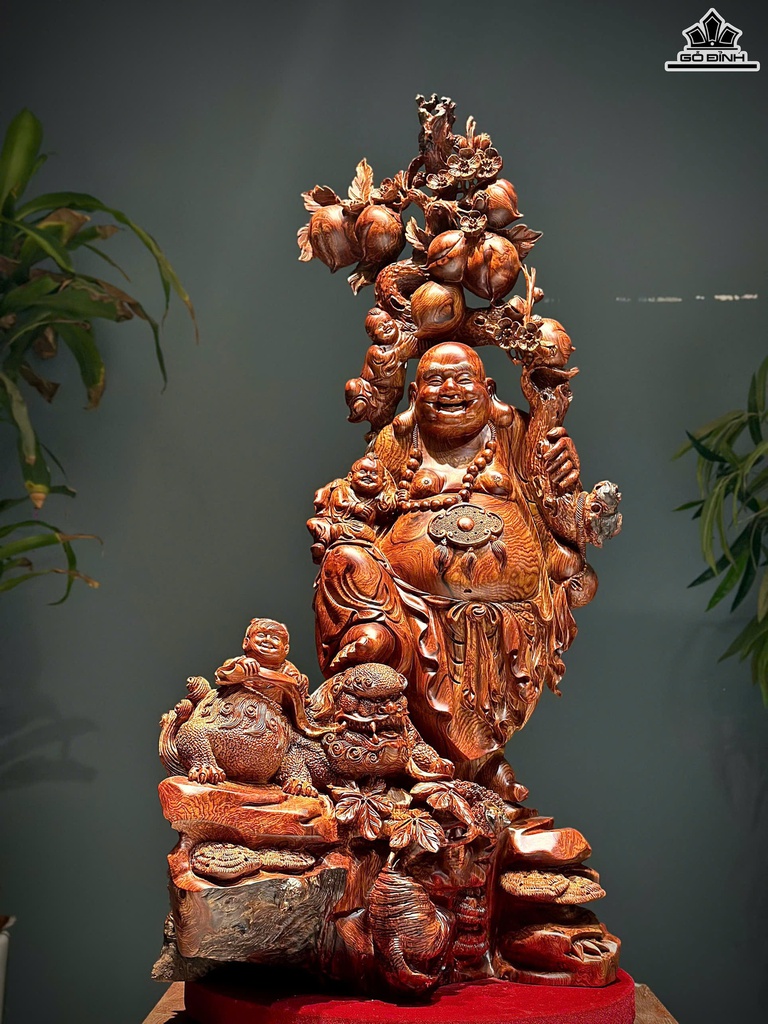 Tượng Phật Di Lặc Tam Phúc Gỗ Cẩm Cao 105 Ngang 50 Sâu 34 (cm)