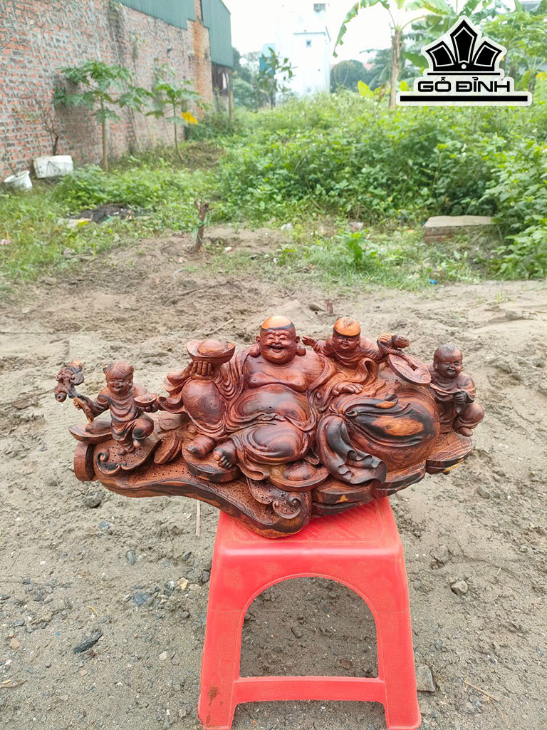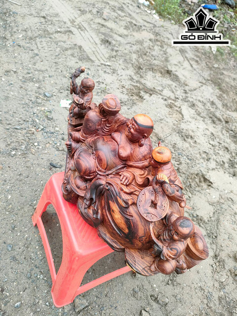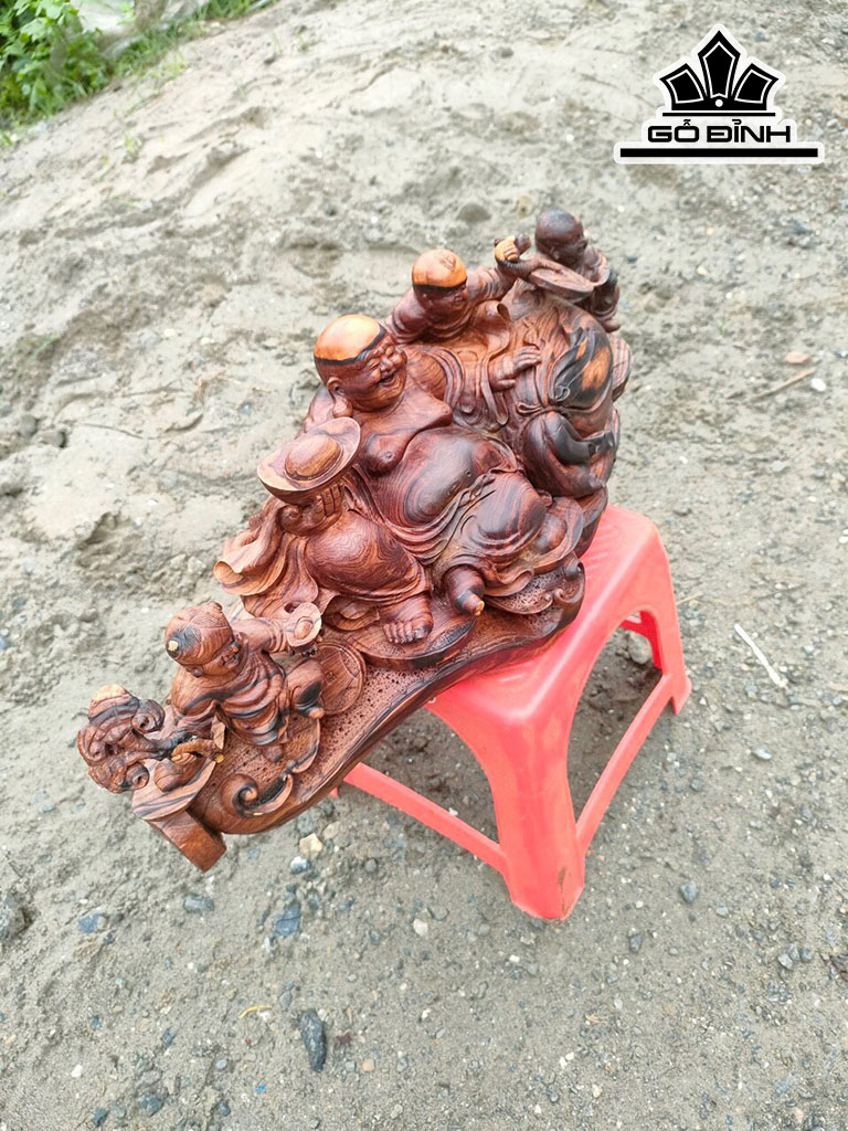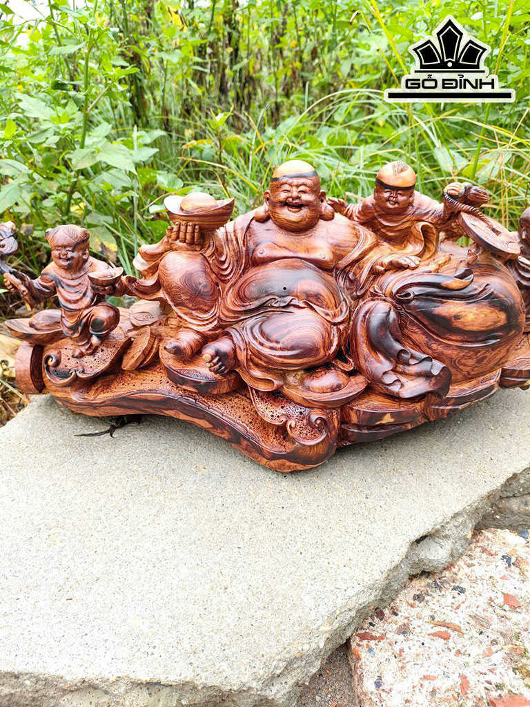 Tượng Phật Di Lặc Tam Phúc Gỗ Cẩm Cao 23 Ngang 50 Sâu 20 (cm)