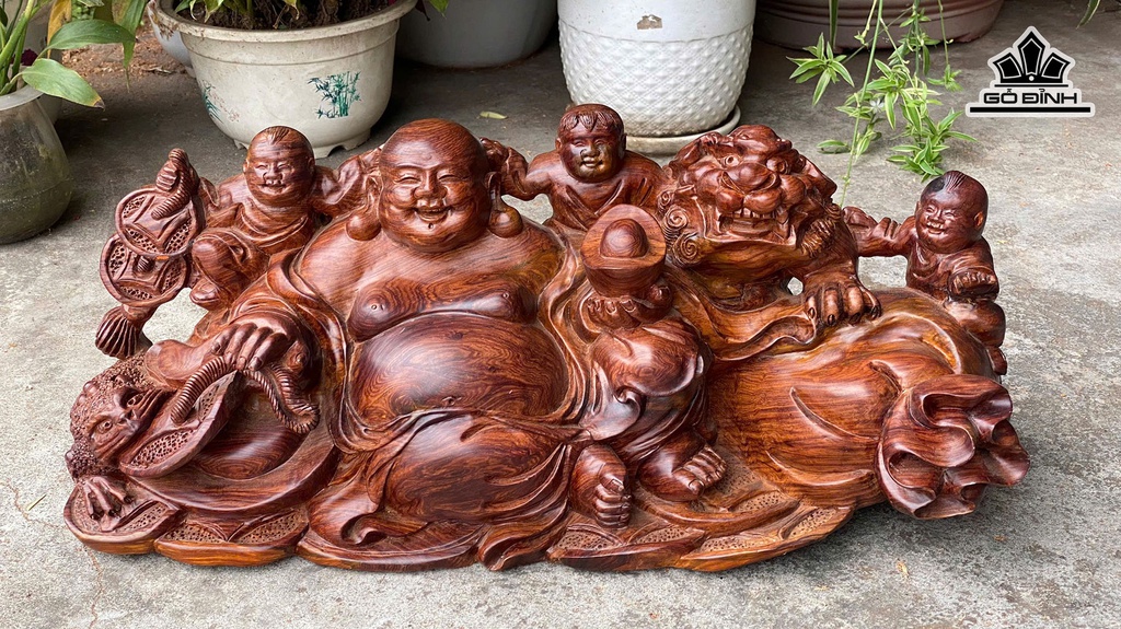 Tượng Phật Di Lặc Tam Phúc Gỗ Cẩm Cao 25 Ngang 55 Sâu 18 (cm)