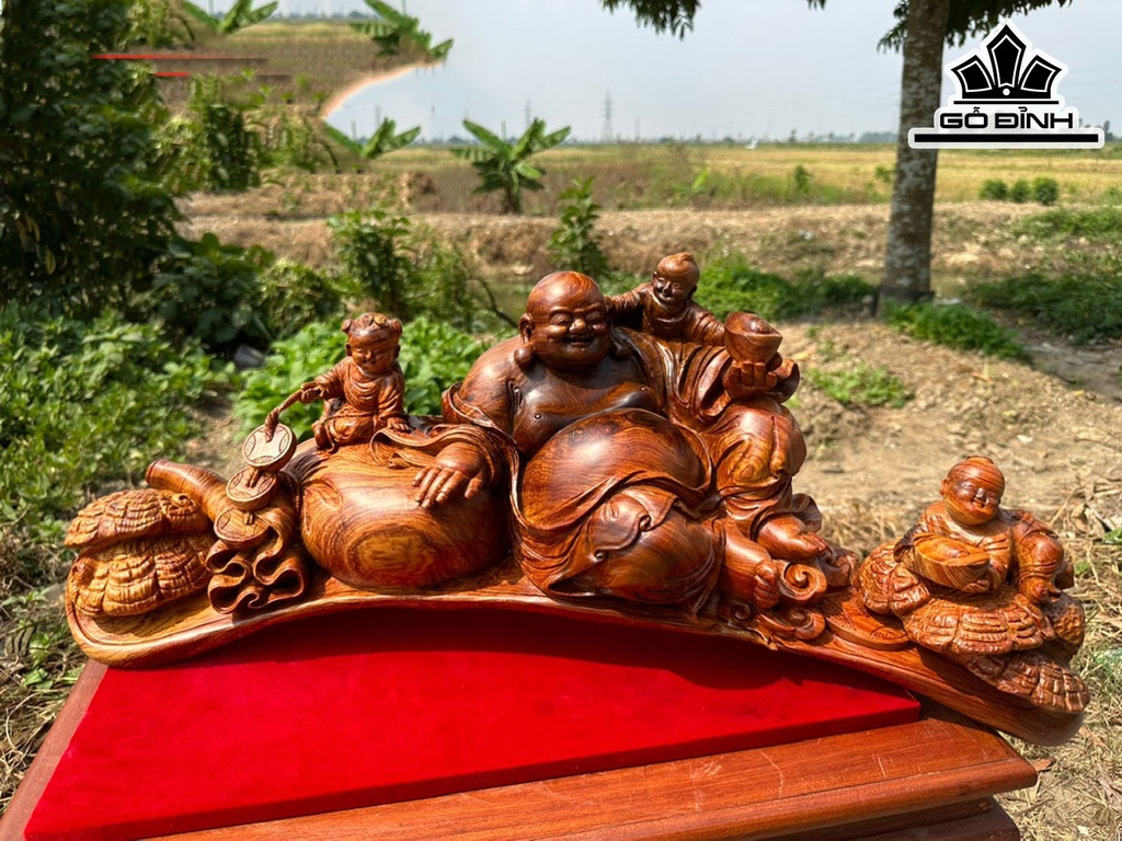 Tượng Phật Di Lặc Tam Phúc Gỗ Cẩm Cao 28 Ngang 68 Sâu 22 (cm)