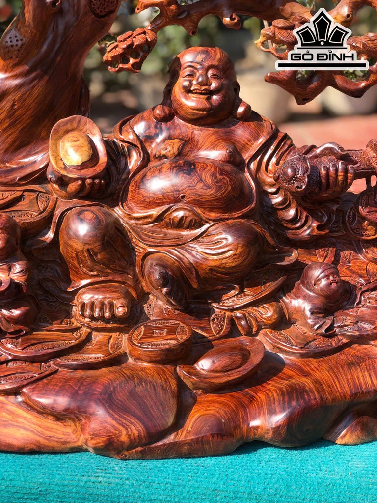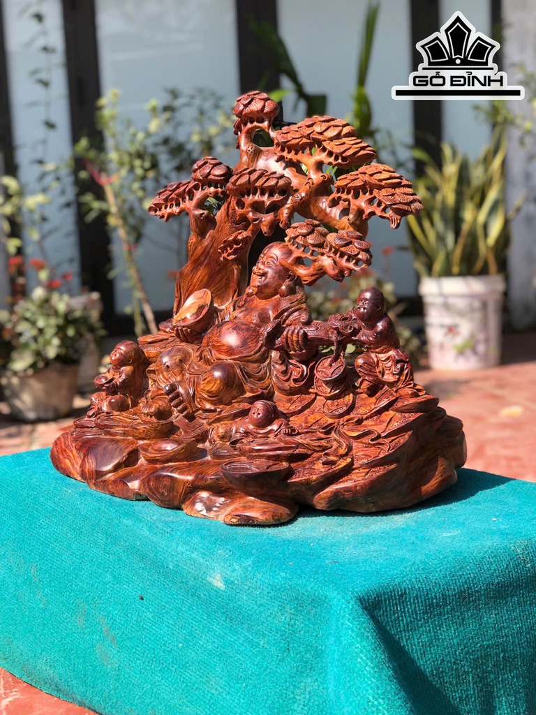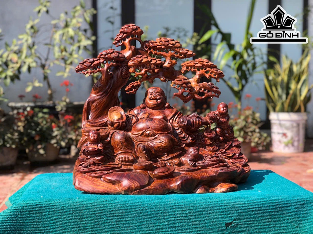 Tượng Phật Di Lặc Tam Phúc Gỗ Cẩm Cao 52 Ngang 58 Sâu 36 (cm)