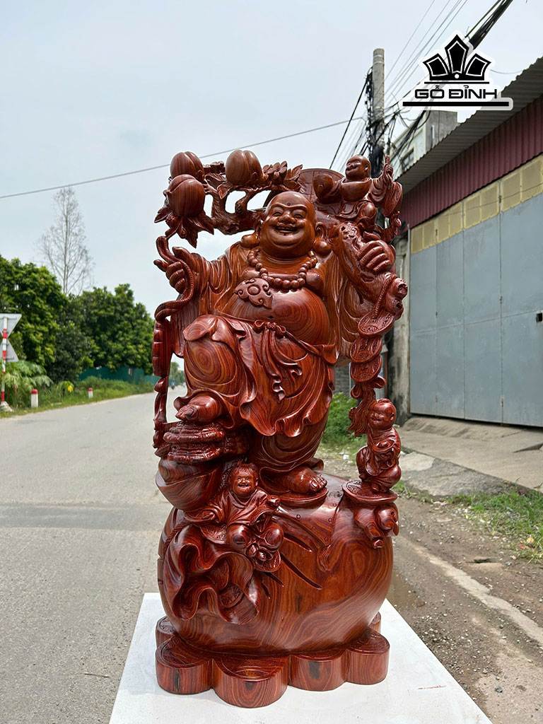 Tượng Phật Di Lặc Tam Phúc Gỗ Cẩm Cao 80 Ngang 40 Sâu 26 (cm) 45kg