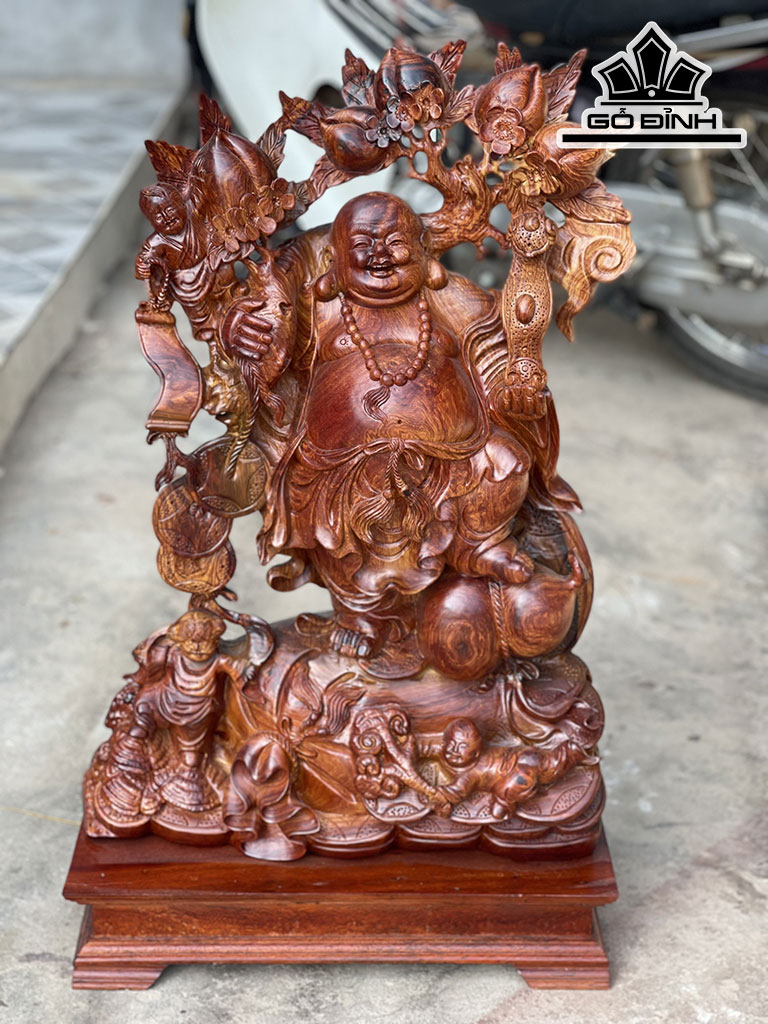 Tượng Phật Di Lặc Tam Phúc Gỗ Cẩm Cao Cả Kỷ 76 Ngang 43 Sâu 22 (cm)