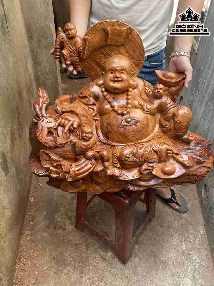 Tượng Phật Di Lặc Tam Phúc Gỗ Hương Cao 75 Rộng 78 Dày 35 (cm)