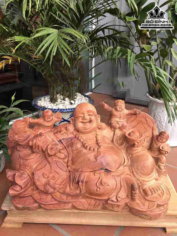 Tượng Phật Di Lặc Tam Phúc Gỗ Hương Cao 32 Rộng 59 Dày 32 (cm)