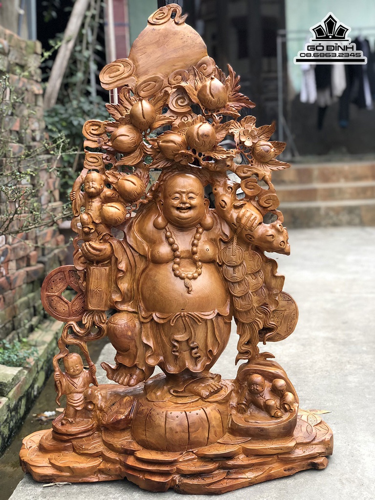 Tượng Phật Di Lặc Tam Phúc Gỗ Hương