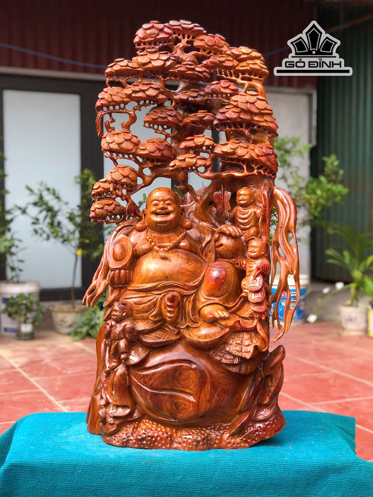 Tượng Phật Di Lặc Tam Phúc Gỗ Hương Cao 112 Ngang 56 Sâu 36 (cm)