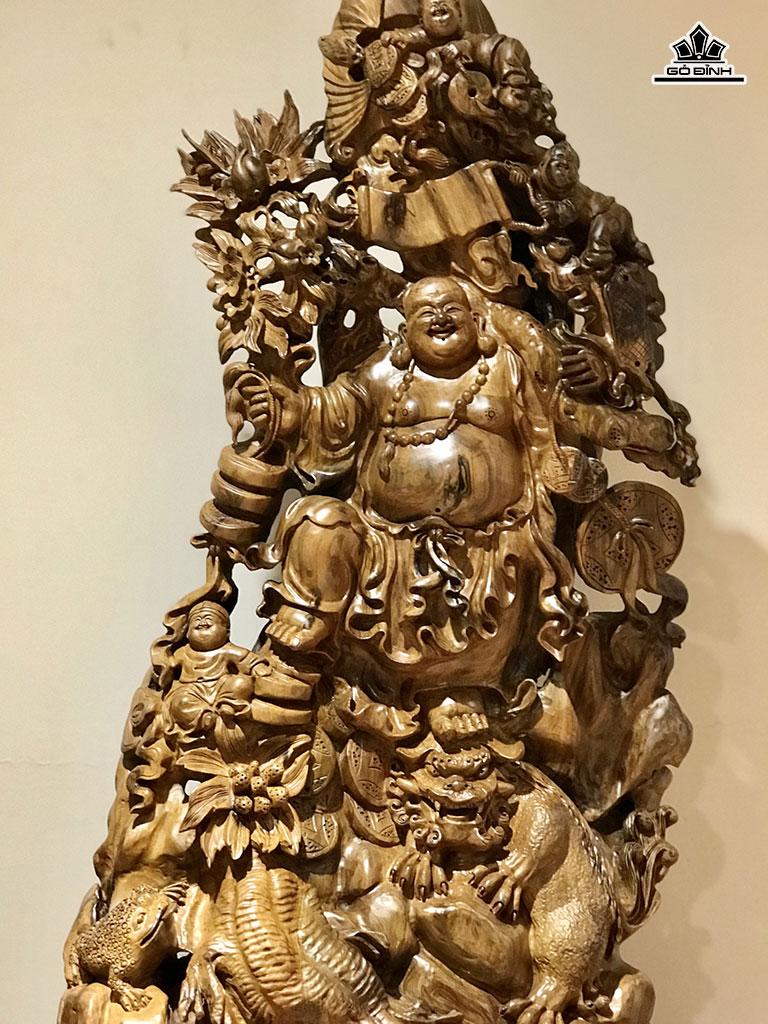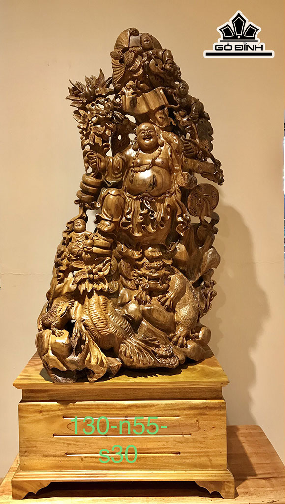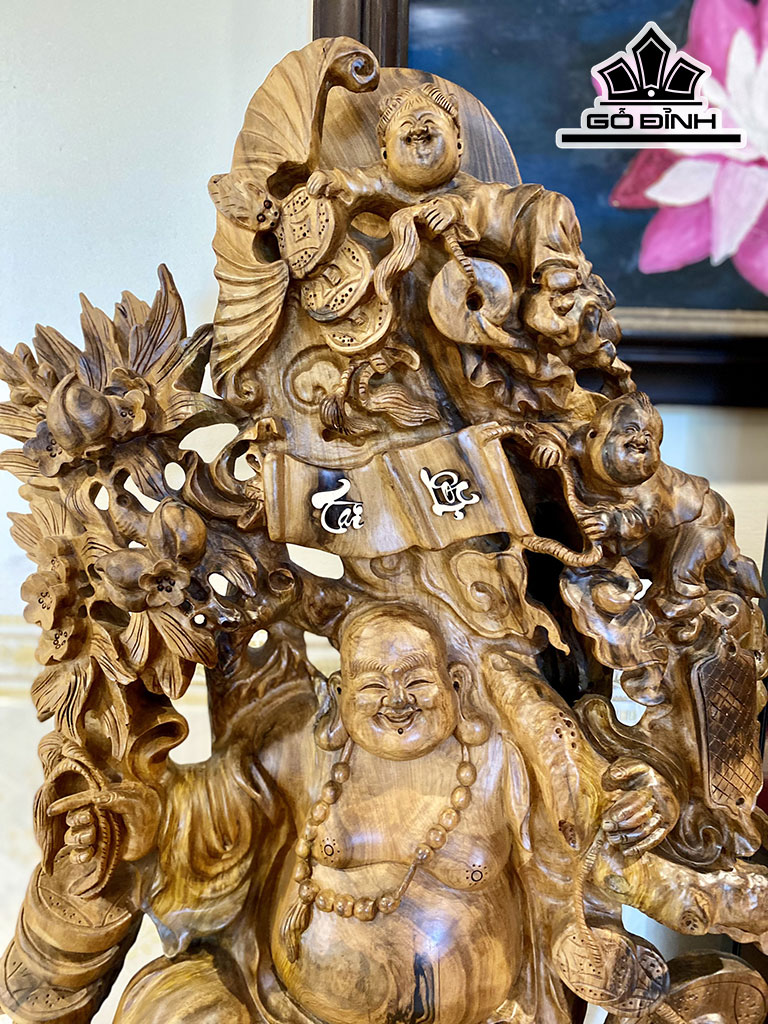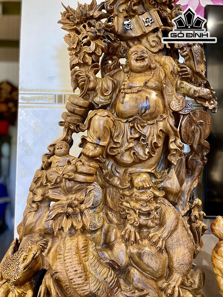 Tượng Phật Di Lặc Tam Phúc Gỗ Hương Cao 130 Ngang 55 Sâu 40 (cm)