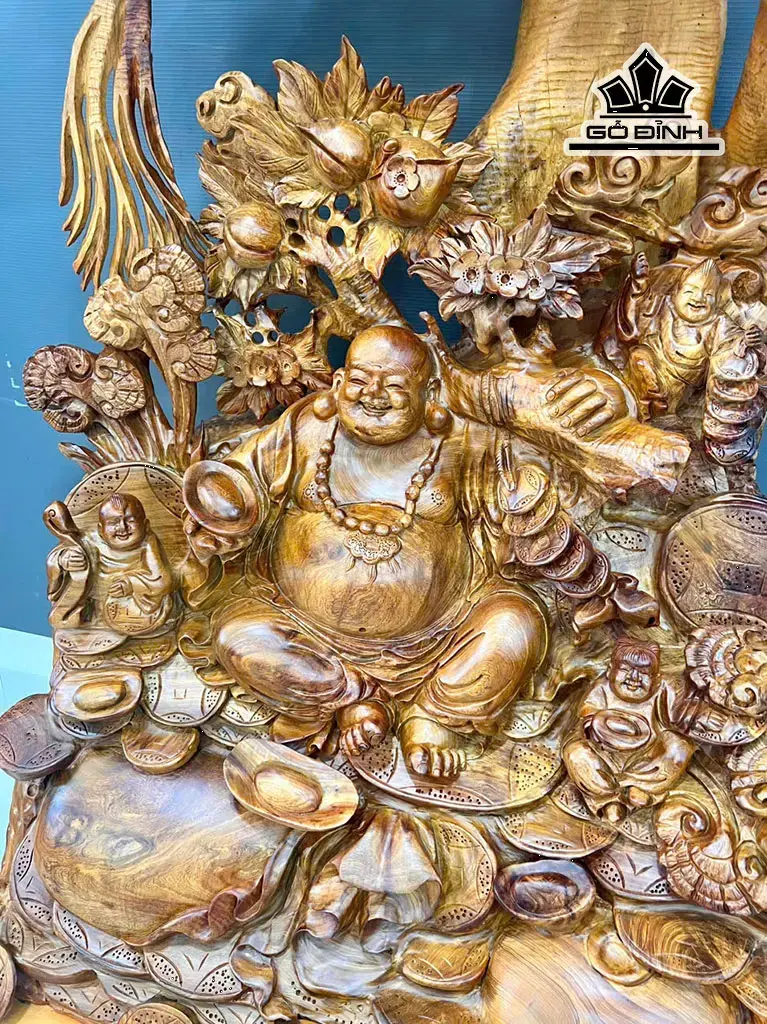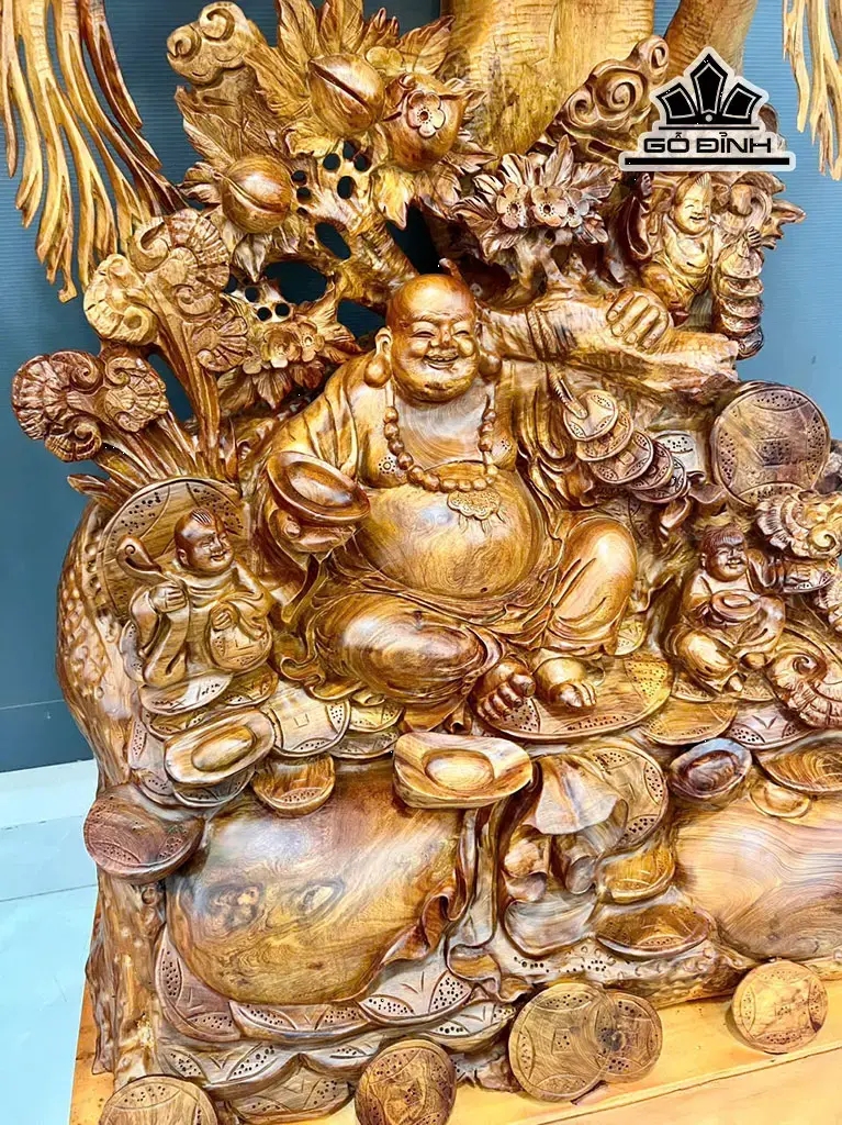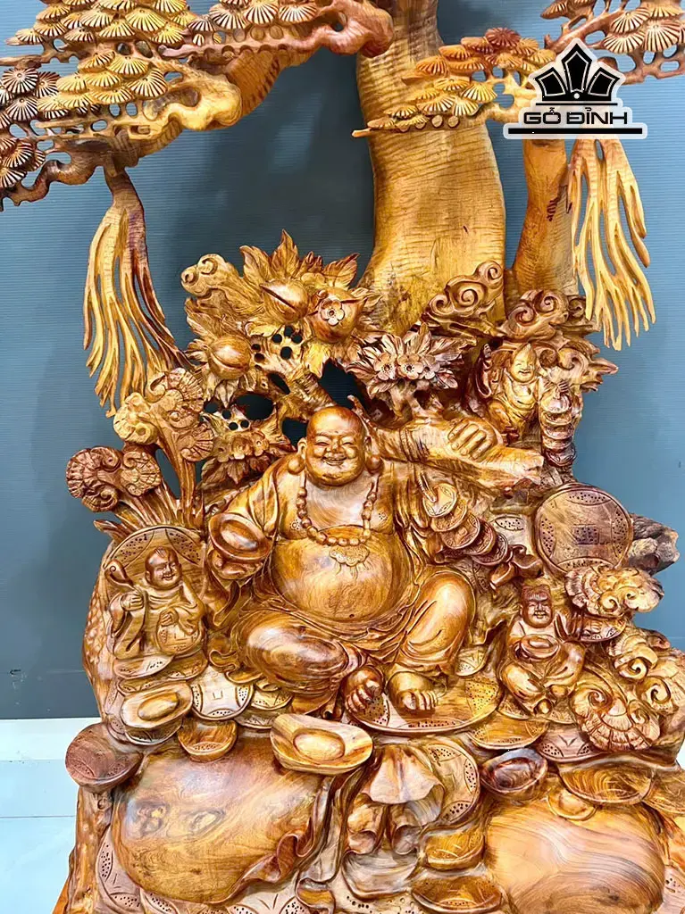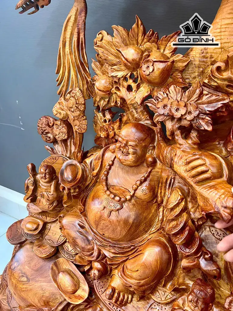 Tượng Phật Di Lặc Tam Phúc Gỗ Hương Cao 160 Ngang 80 Sâu 52 (cm)