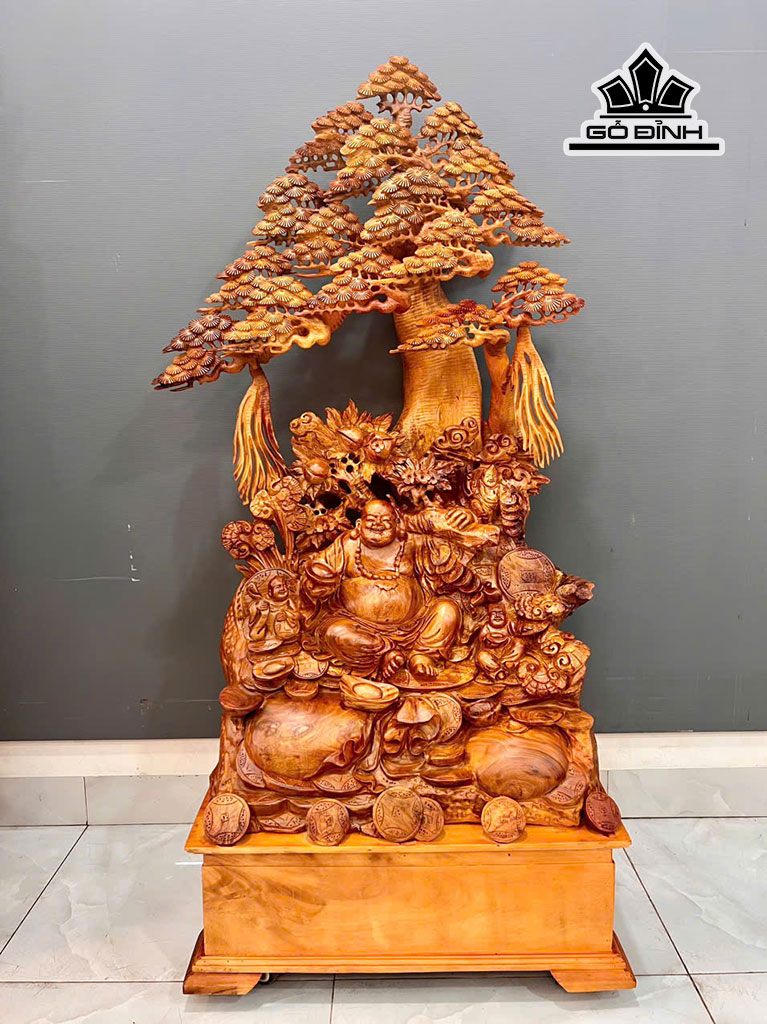 Tượng Phật Di Lặc Tam Phúc Gỗ Hương Cao 160 Ngang 80 Sâu 52 (cm)