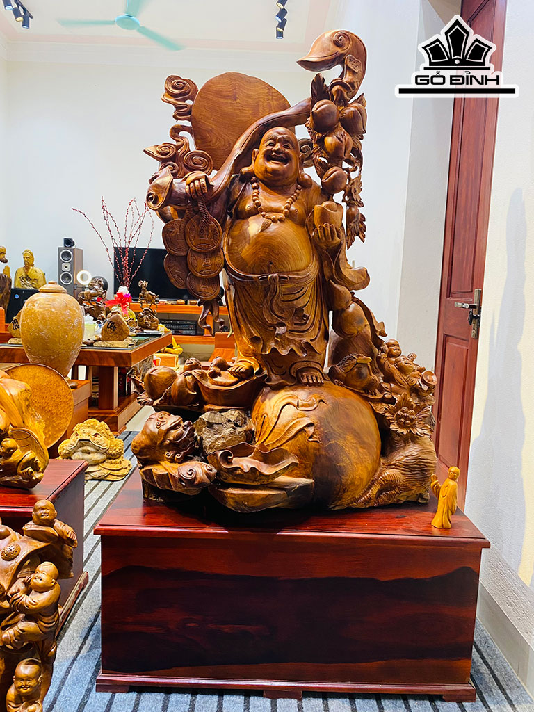 Tượng Phật Di Lặc Tam Phúc Gỗ Hương Cao 162 Ngang 90 Sâu 50 (cm)