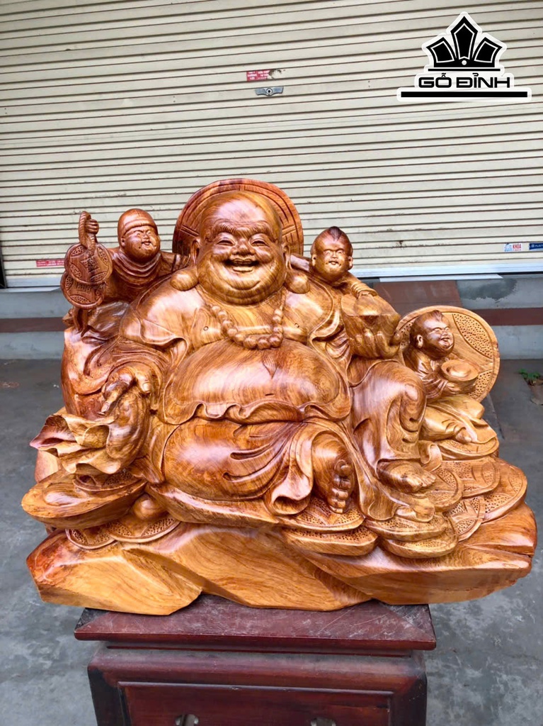 Tượng Phật Di Lặc Tam Phúc Gỗ Hương Cao 41 Ngang 56 Sâu 35 (cm)