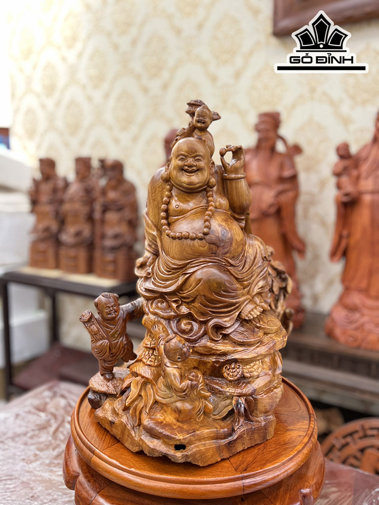 Tượng Phật Di Lặc Tam Phúc Gỗ Hương Cao 50 Ngang 40 Sâu 30 (cm)
