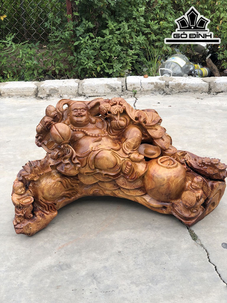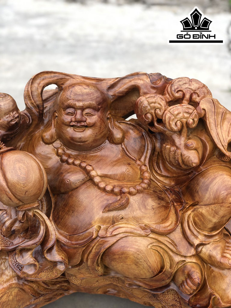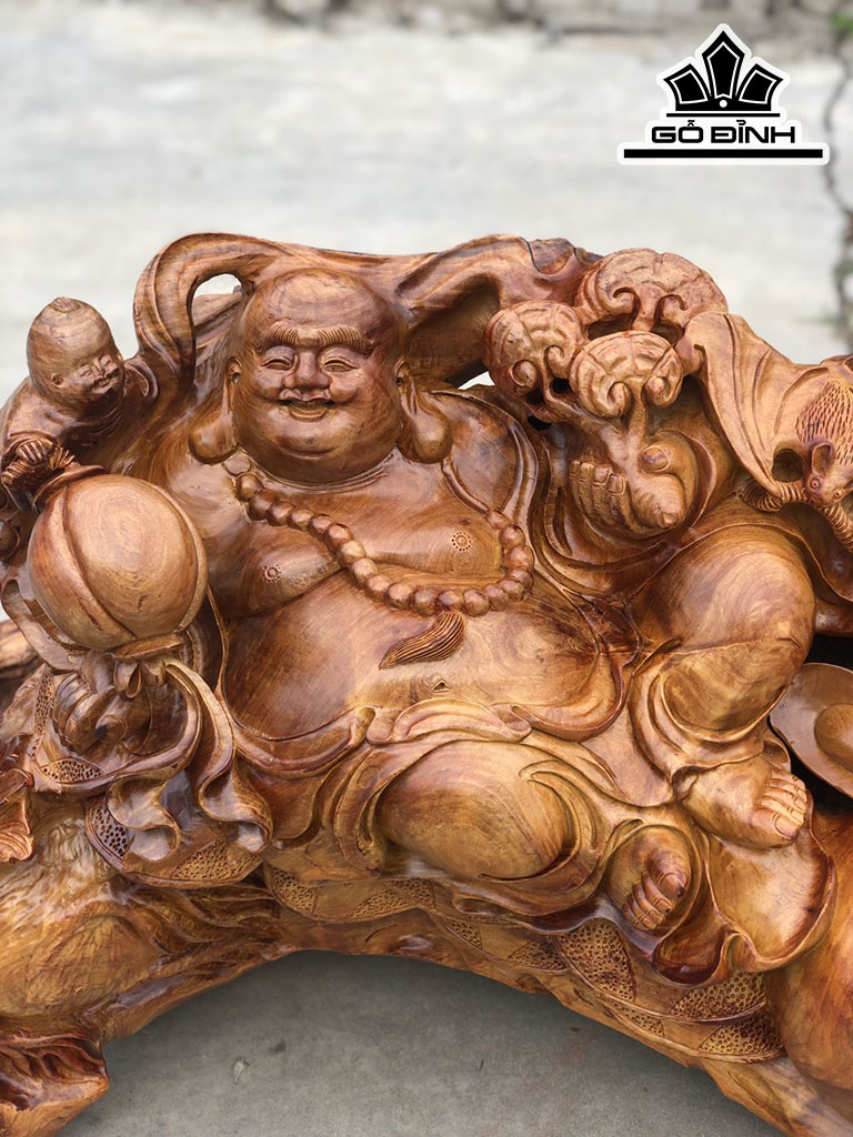 Tượng Phật Di Lặc Tam Phúc Gỗ Hương Cao 50 Ngang 90 Sâu 50 (cm)