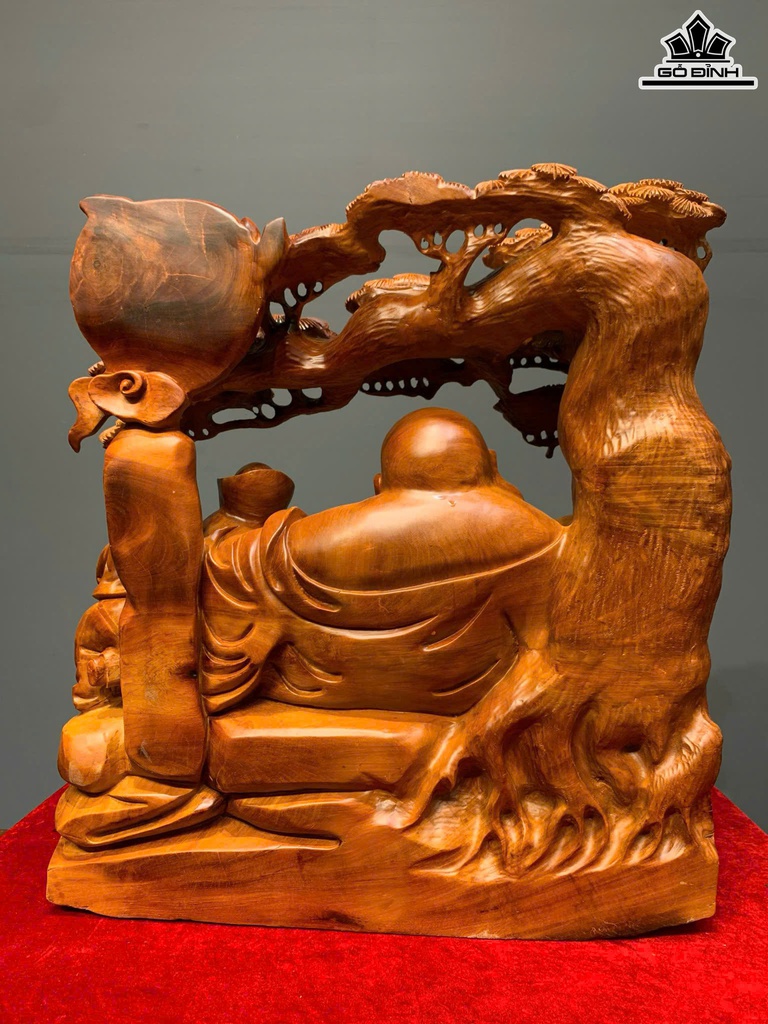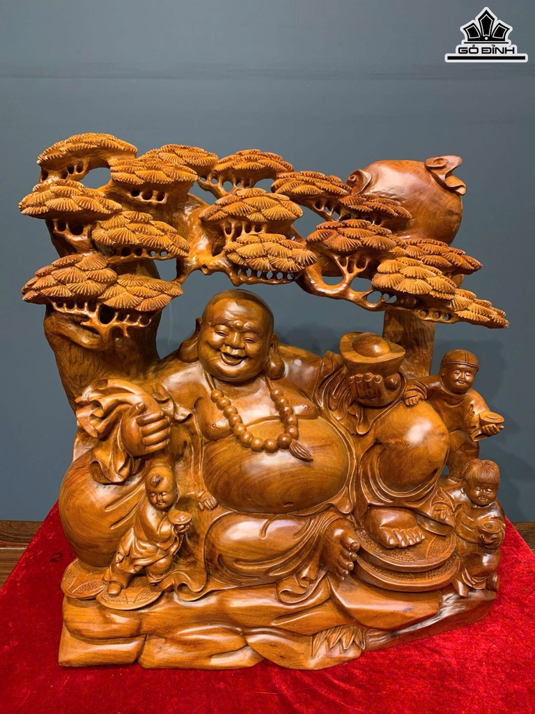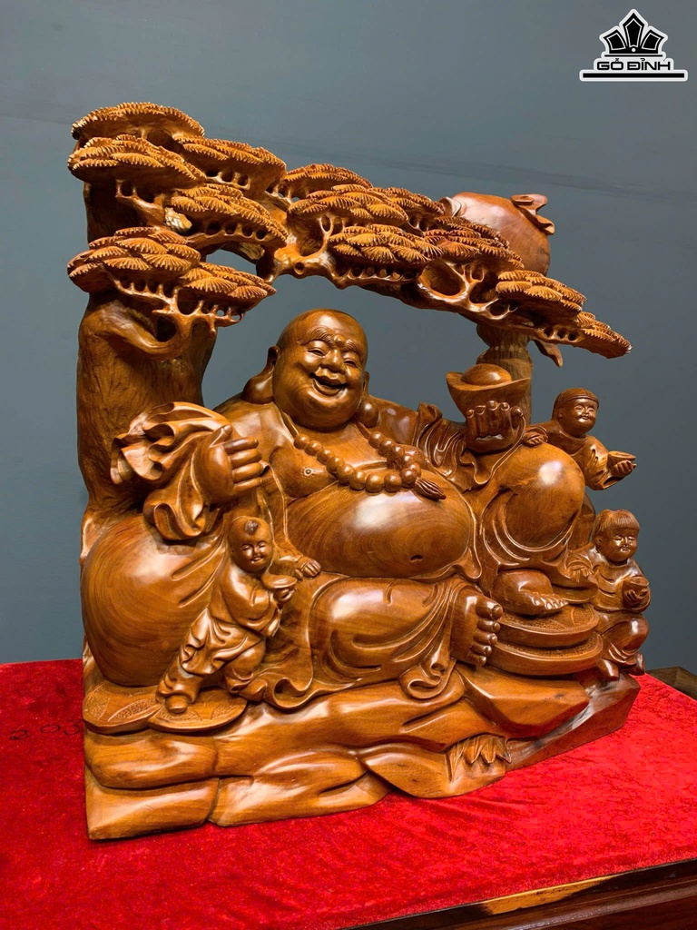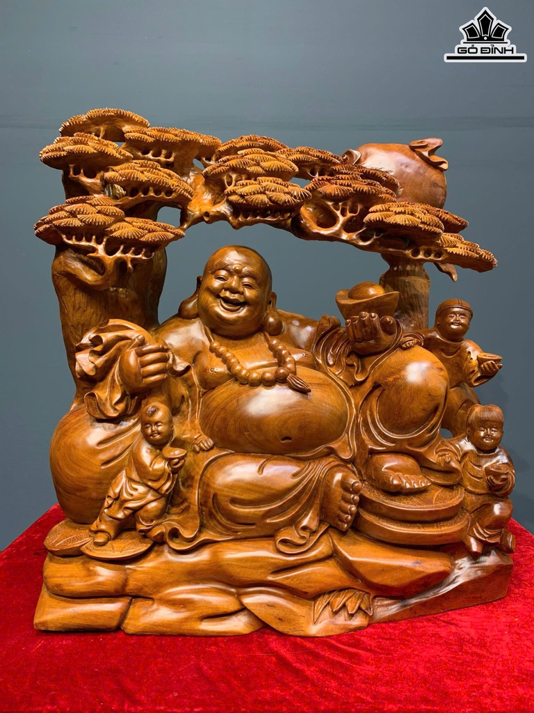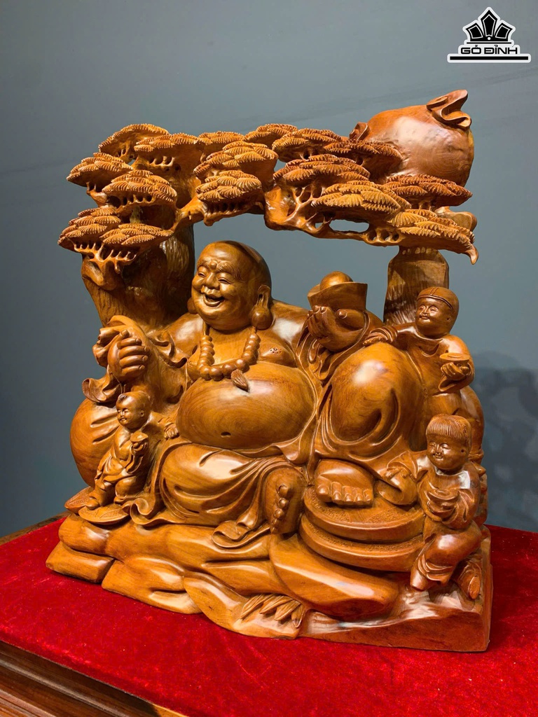 Tượng Phật Di Lặc Tam Phúc Gỗ Hương Cao 56 Ngang 50 Sâu 19 (cm)