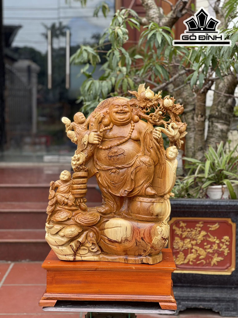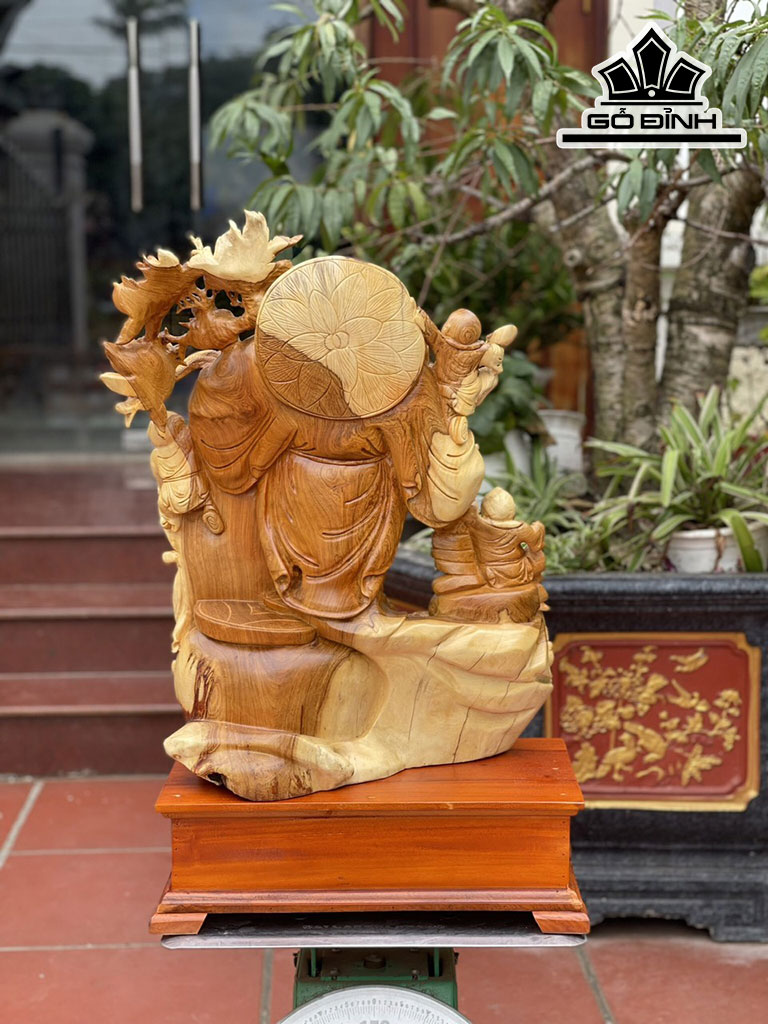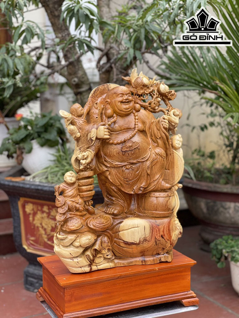 Tượng Phật Di Lặc Tam Phúc Gỗ Hương Cao 63 Ngang 45 Sâu 25 (cm)