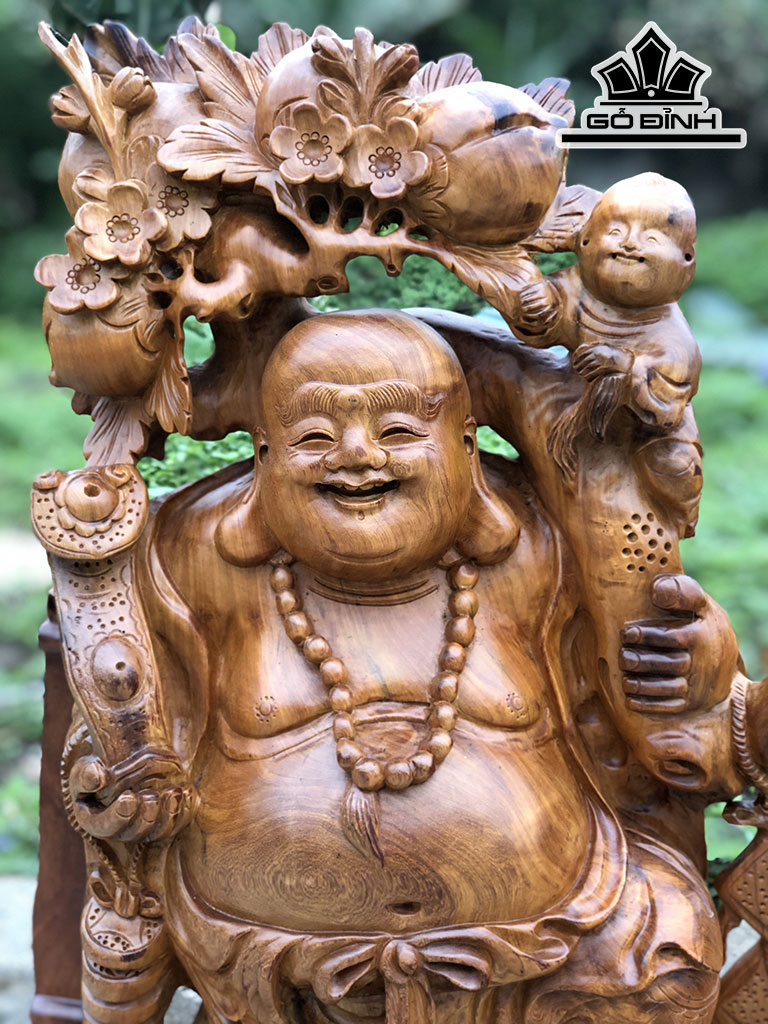 Tượng Phật Di Lặc Tam Phúc Gỗ Hương Cao 67 Ngang 40 Sâu 15 (cm)