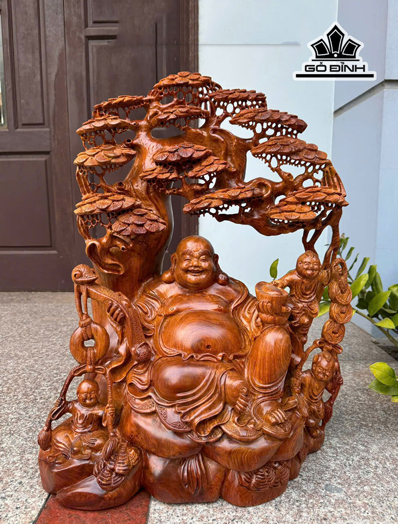 Tượng Phật Di Lặc Tam Phúc Gỗ Hương Cao 67 Ngang 50 Sâu 32 (cm)