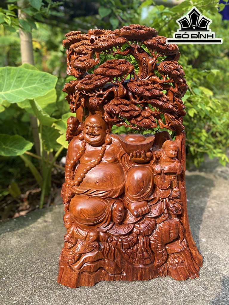 Tượng Phật Di Lặc Tam Phúc Gỗ Hương Cao 77 Ngang 51 Sâu 36 (cm)