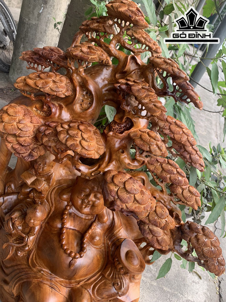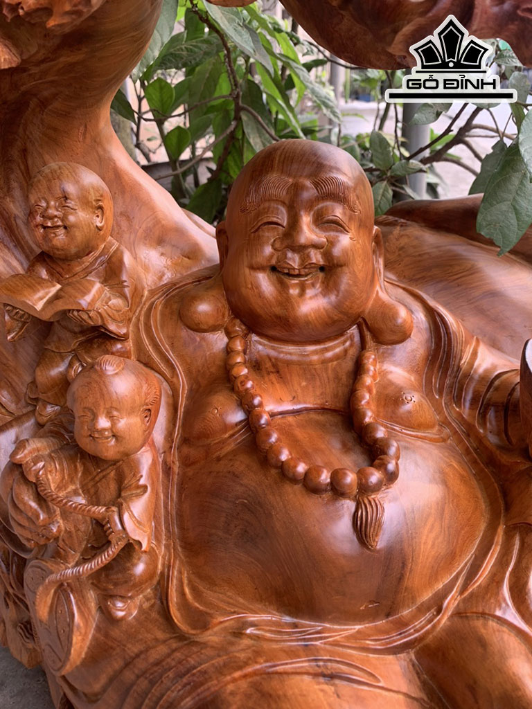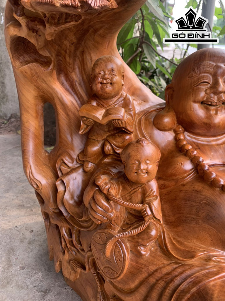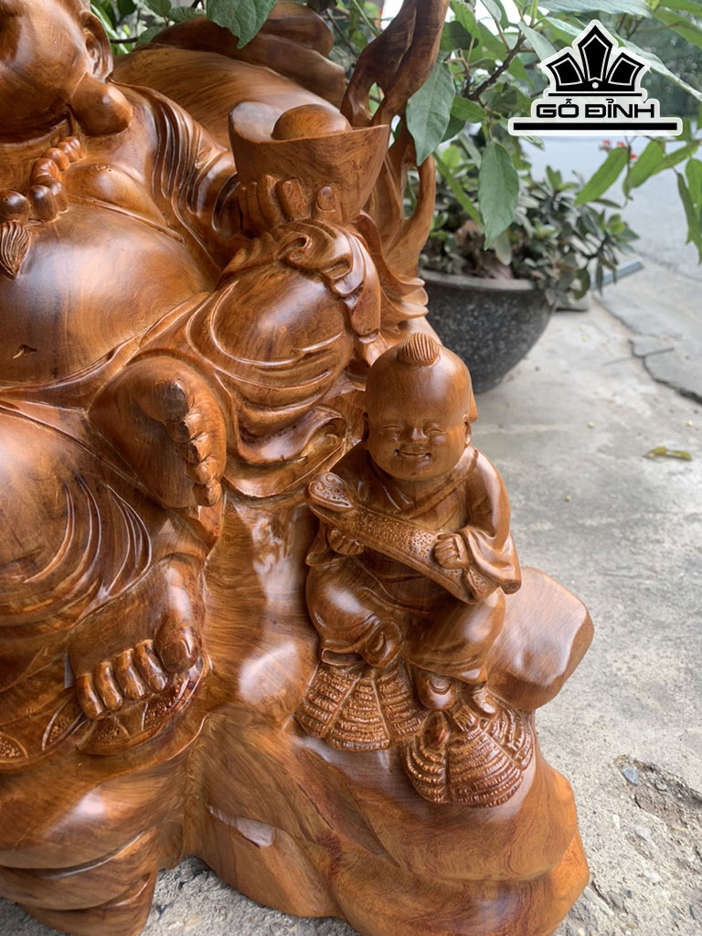 Tượng Phật Di Lặc Tam Phúc Gỗ Hương Cao 81 Ngang 65 Sâu 45 (cm)