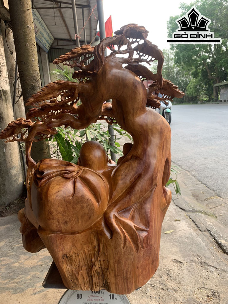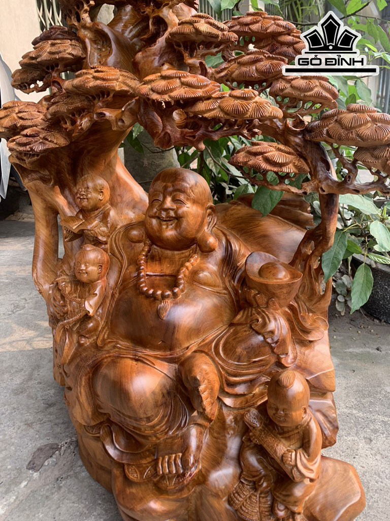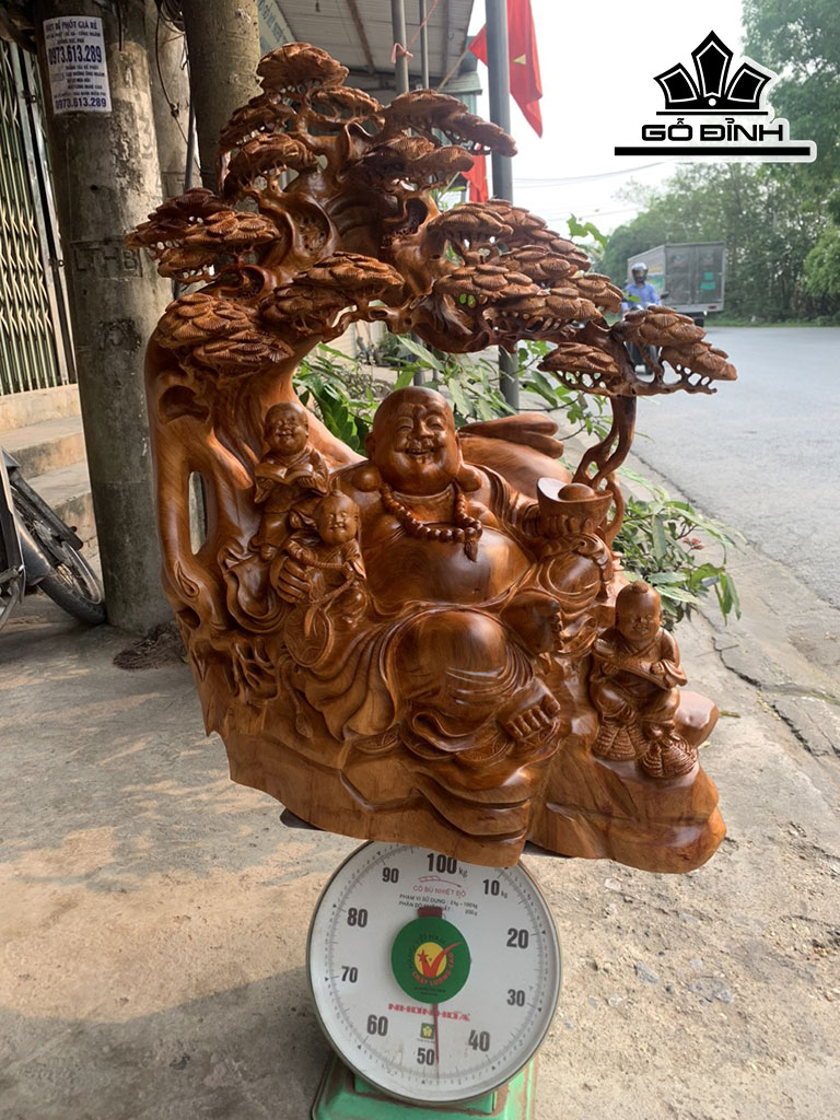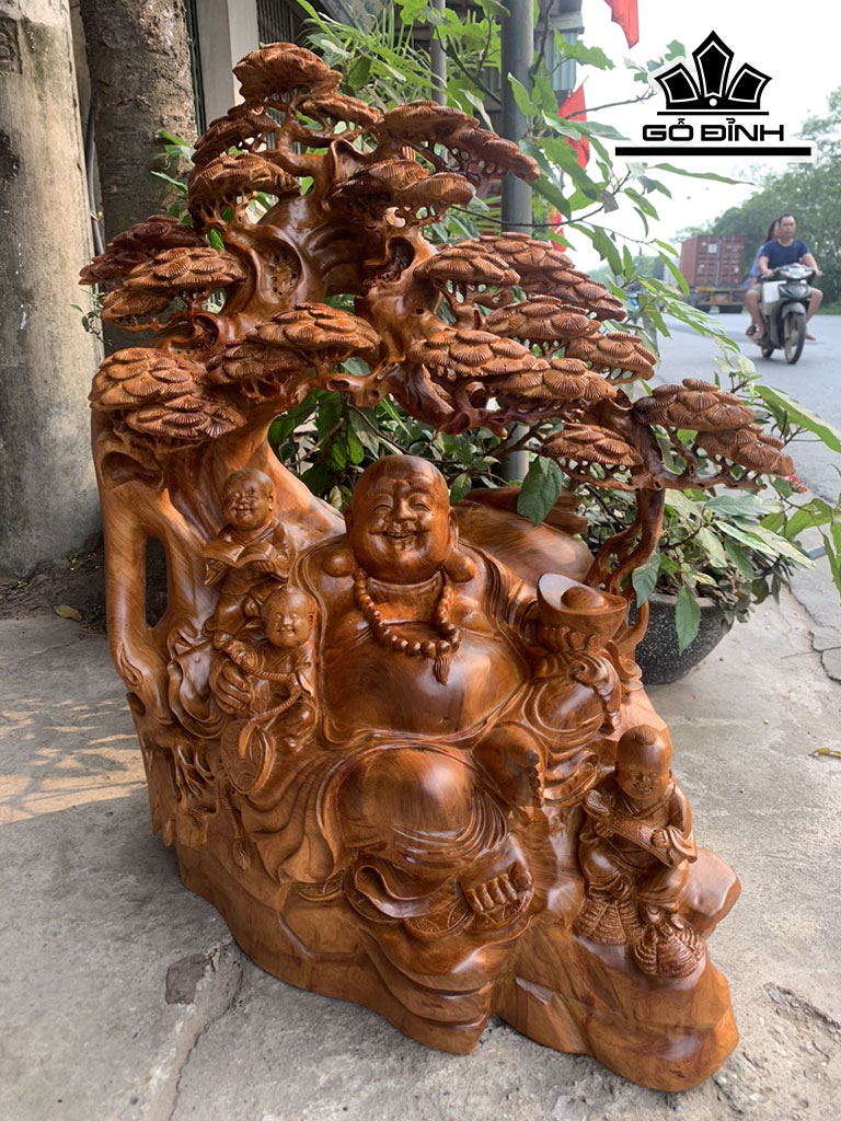 Tượng Phật Di Lặc Tam Phúc Gỗ Hương Cao 81 Ngang 65 Sâu 45 (cm)