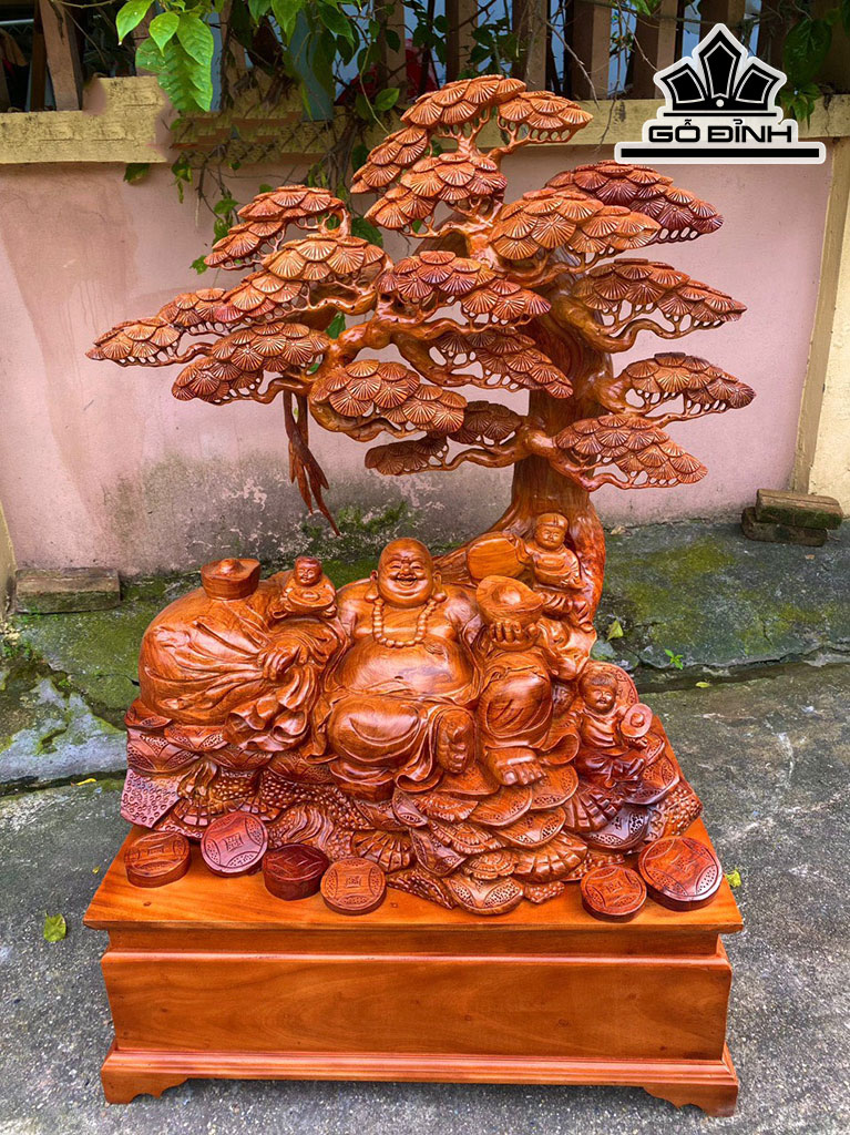 Tượng Phật Di Lặc Tam Phúc Gỗ Hương Cao 81 Ngang 68 Sâu 41 (cm)