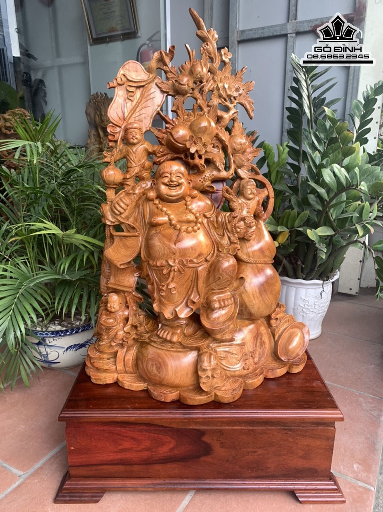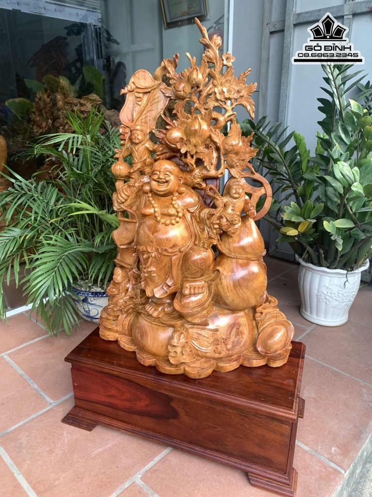 Tượng Phật Di Lặc Tam Phúc Gỗ Hương Cao Cả Kỷ 116 Rộng 60 Sâu 26 (cm)