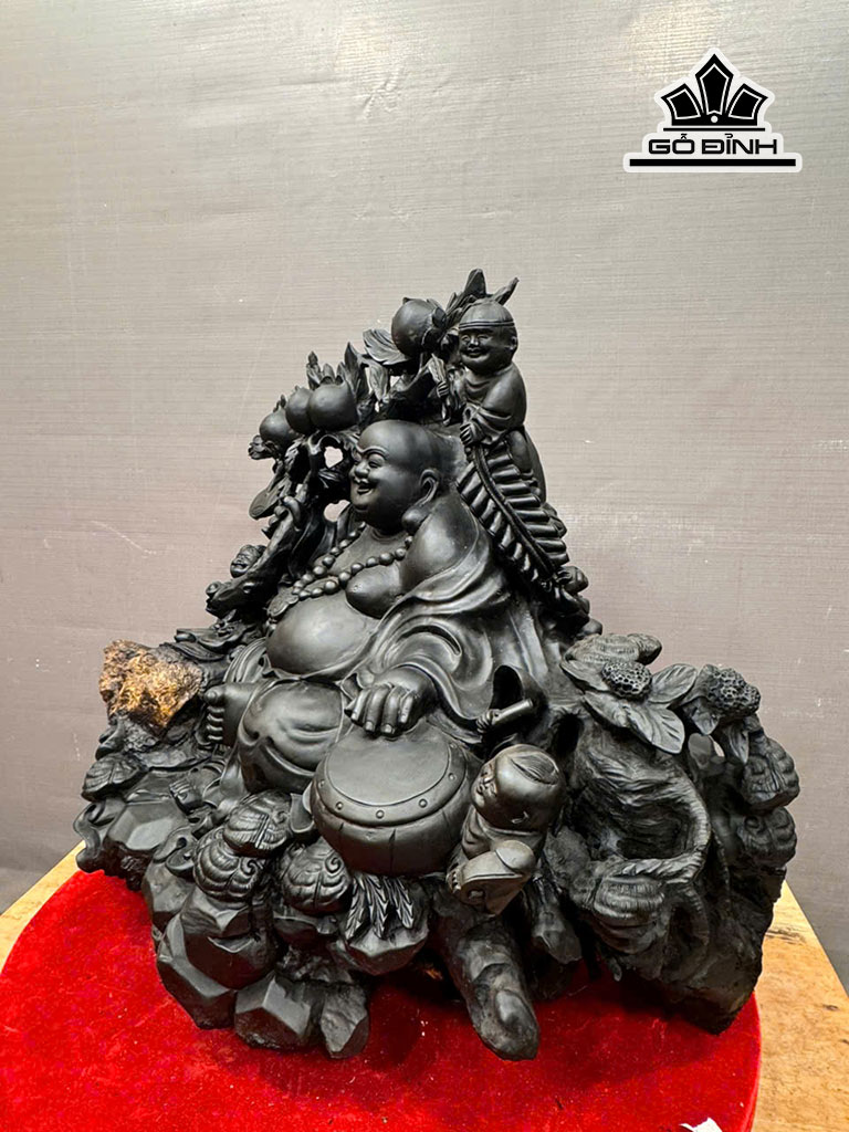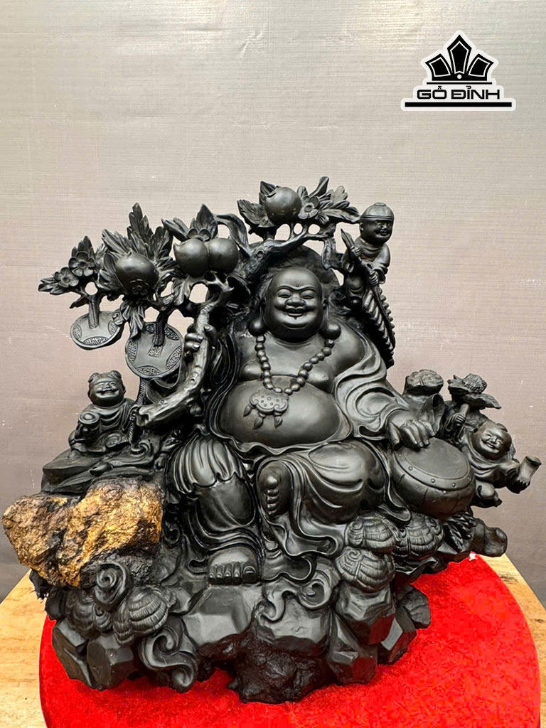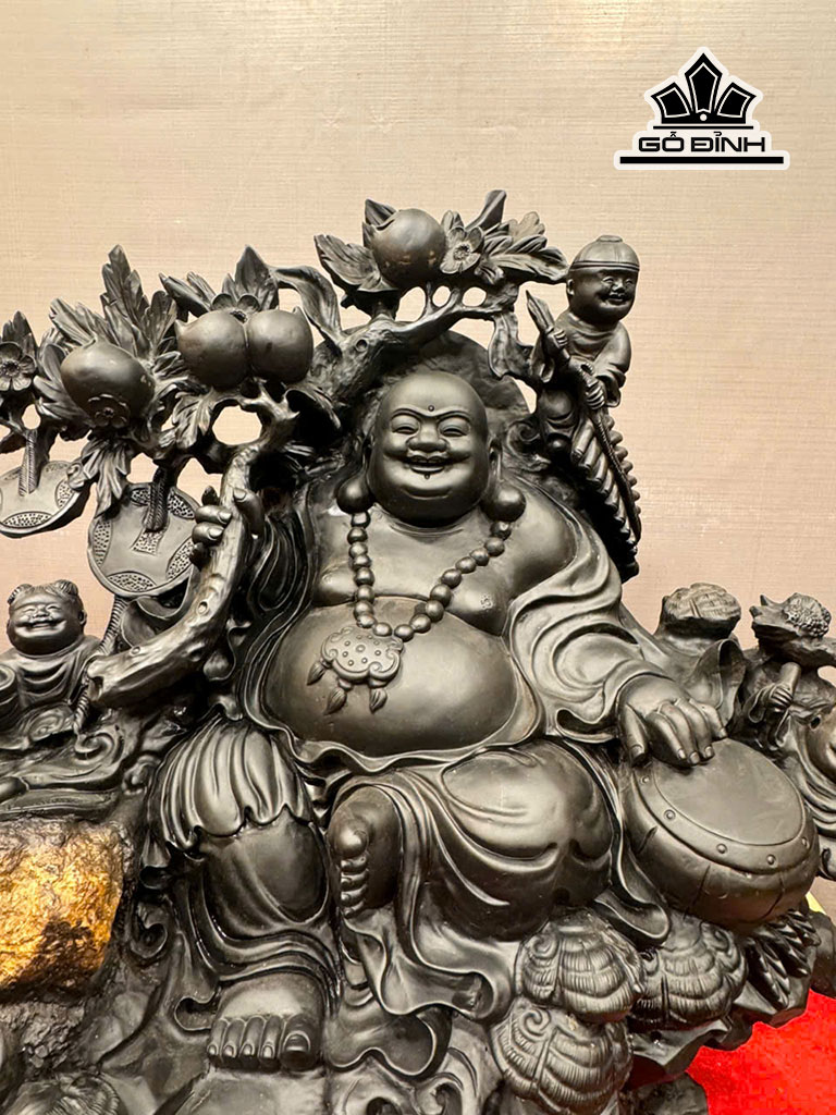 Tượng Phật Di Lặc Tam Phúc Gỗ Mun Cao 52 Ngang 62 Sâu 31 (cm) 29kg