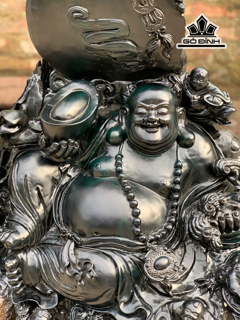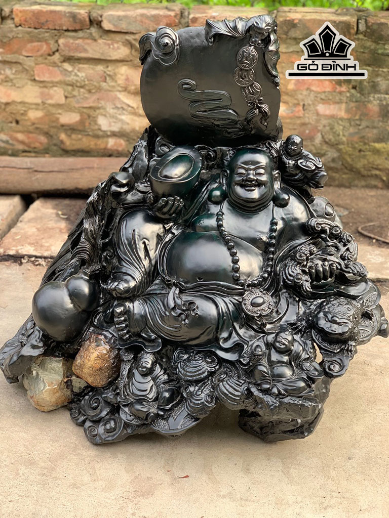 Tượng Phật Di Lặc Tam Phúc Gỗ Mun Sừng Cao 68 Ngang 66 Sâu 46 (cm)