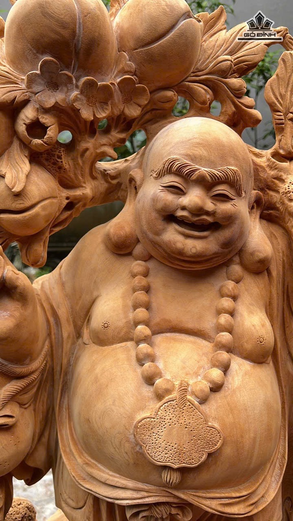 Tượng Phật Di Lặc Tam Phúc Gỗ Ngọc Am Cao 110 Ngang 66 Sâu 36 (cm)