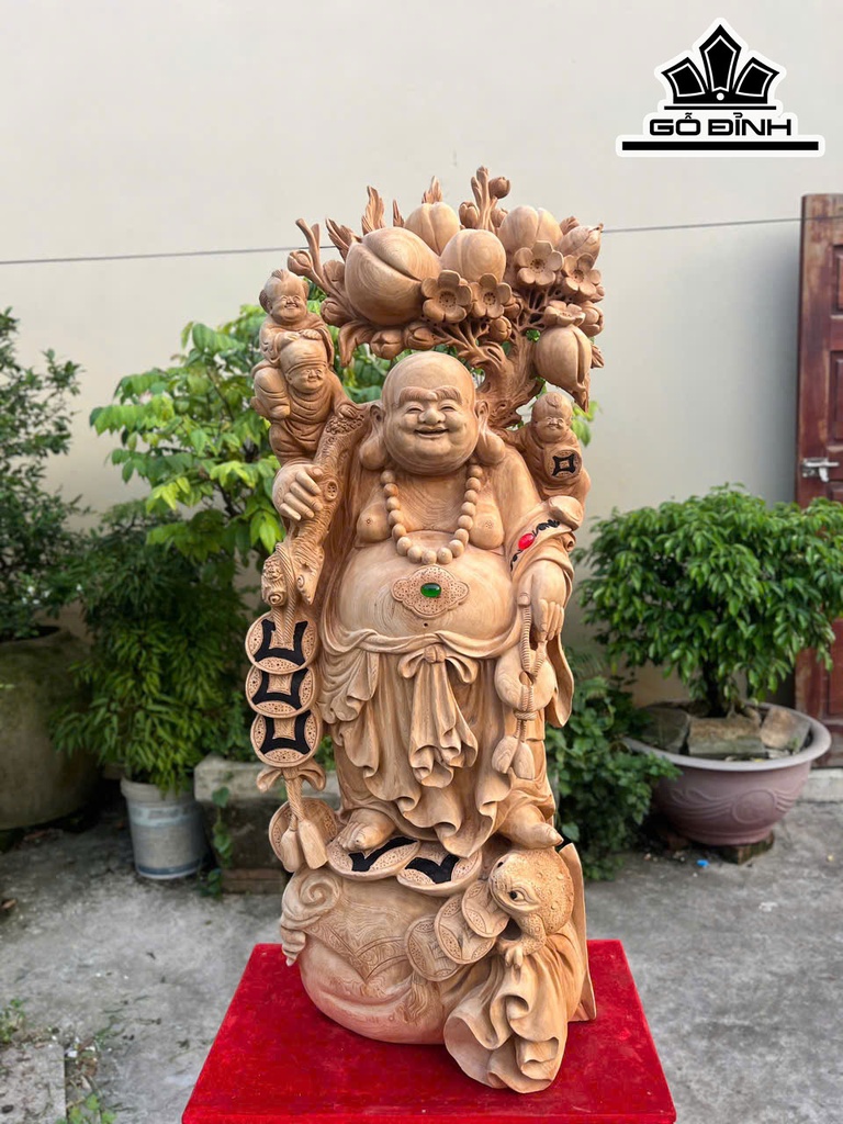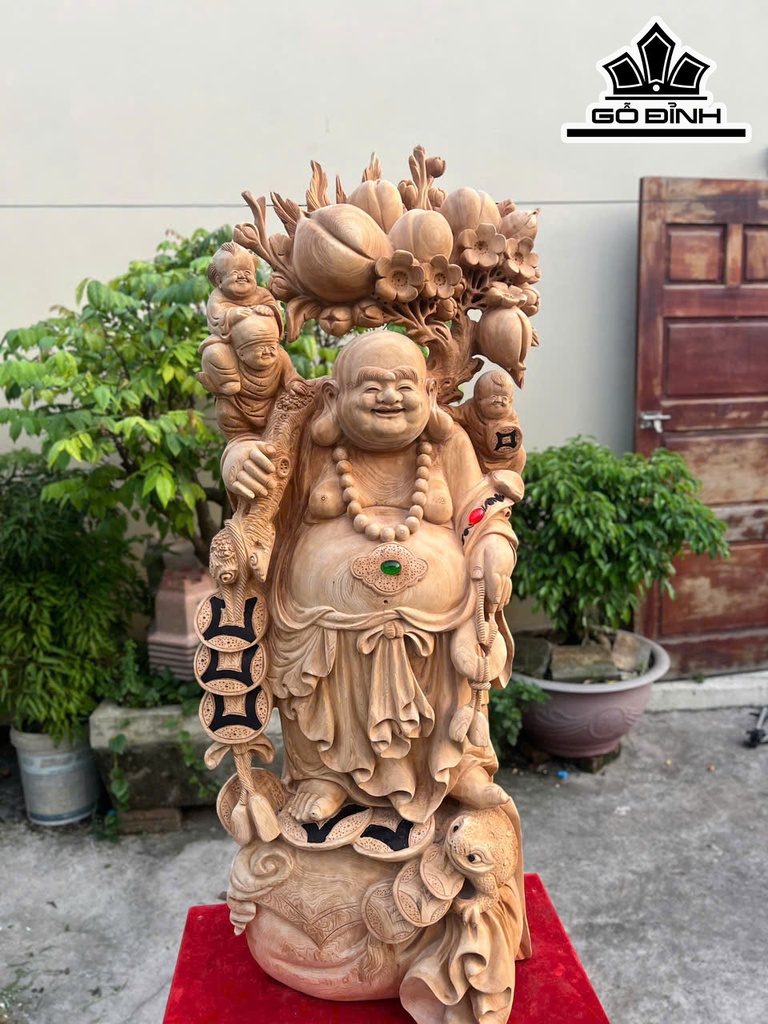 Tượng Phật Di Lặc Tam Phúc Gỗ Ngọc Am Cao 121 Ngang 48 Sâu 35 (cm)