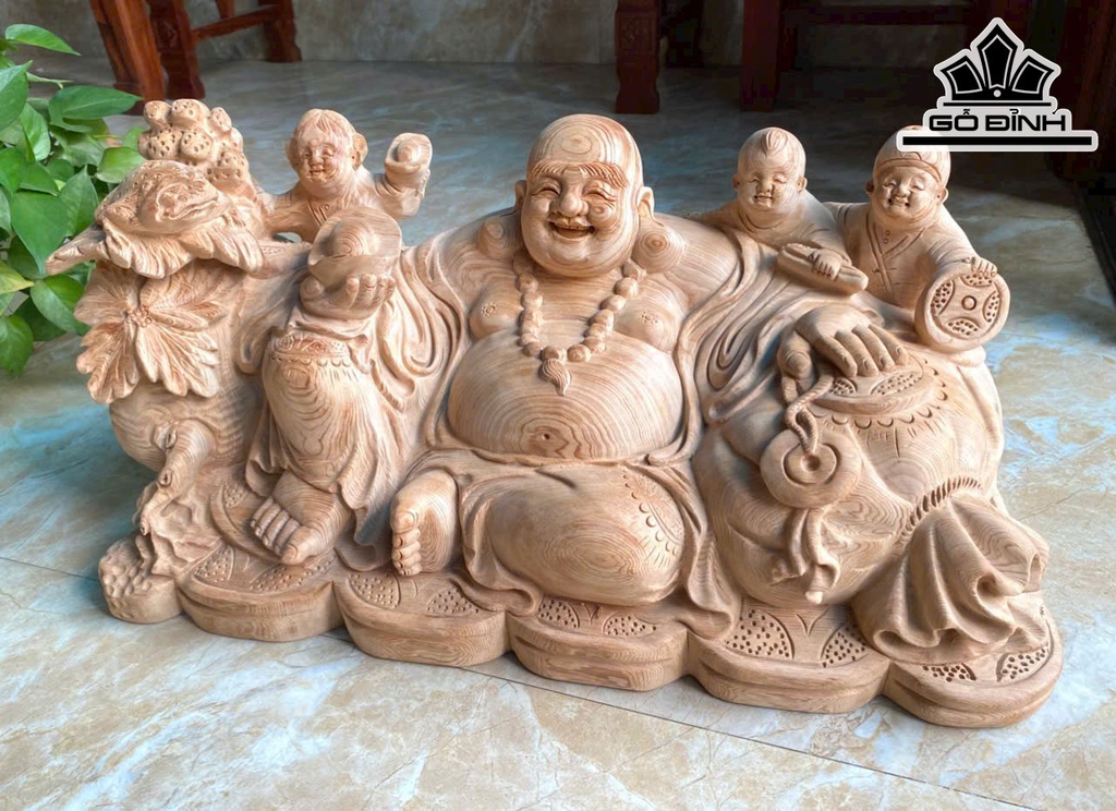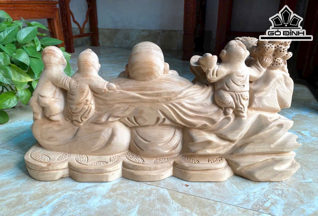 Tượng Phật Di Lặc Tam Phúc Gỗ Ngọc Am Cao 27 Ngang 55 Sâu 28 (cm)