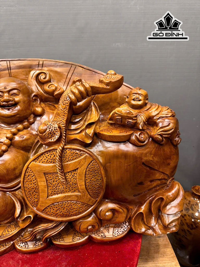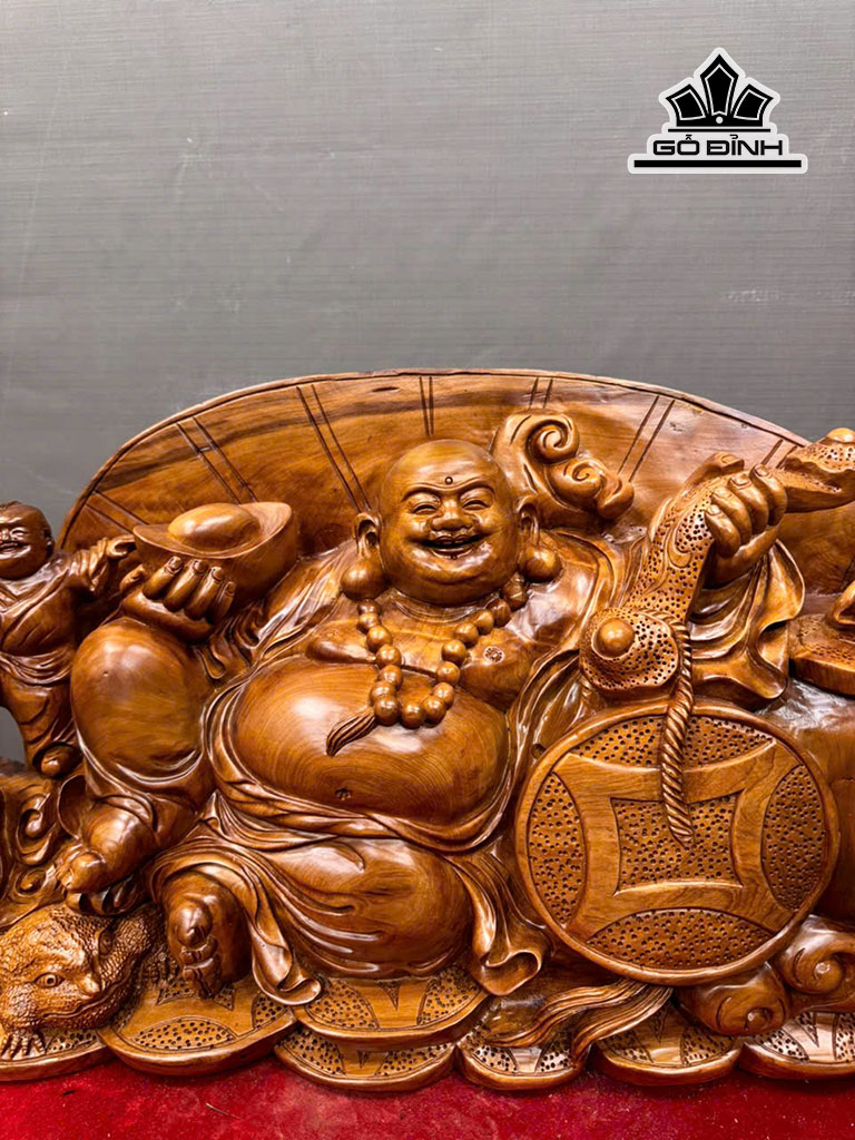 Tượng Phật Di Lặc Tam Phúc Gỗ Ngọc Am Cao 35 Ngang 72 Sâu 20 (cm)