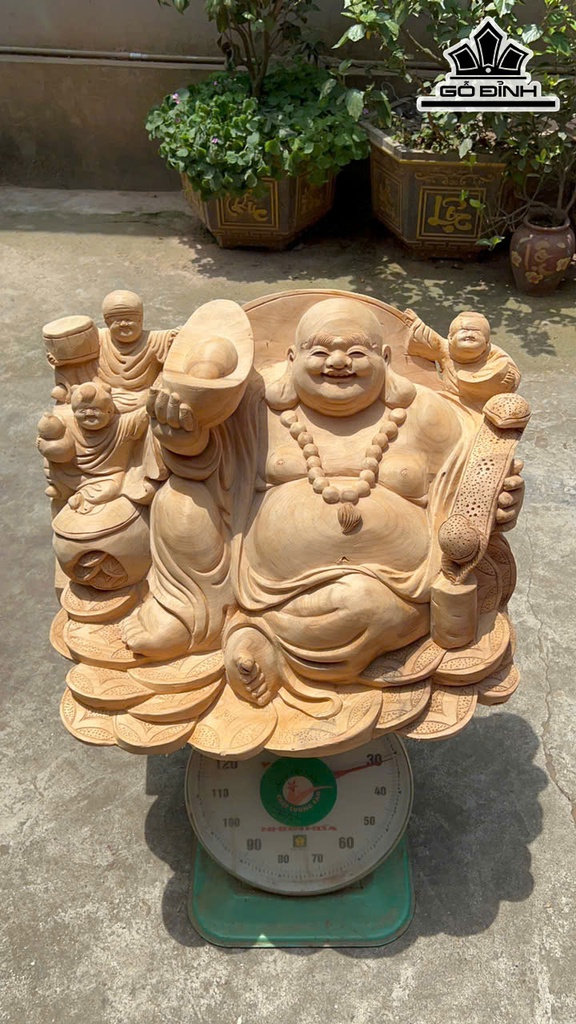 Tượng Phật Di Lặc Tam Phúc Gỗ Ngọc Am Cao 37 Ngang 63 Sâu 40 (cm)