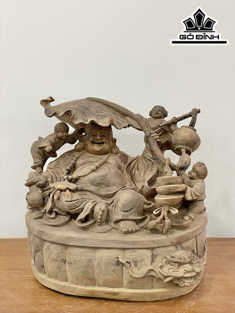 Tượng Phật Di Lặc Tam Phúc Gỗ Ngọc Am Cao 40 Ngang 40 Sâu 34 (cm)
