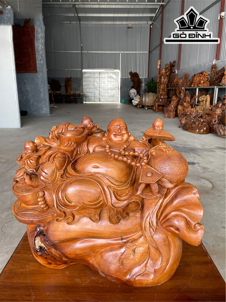 Tượng Phật Di Lặc Tam Phúc Gỗ Ngọc Am Cao 40 Ngang 45 Sâu 30 (cm)