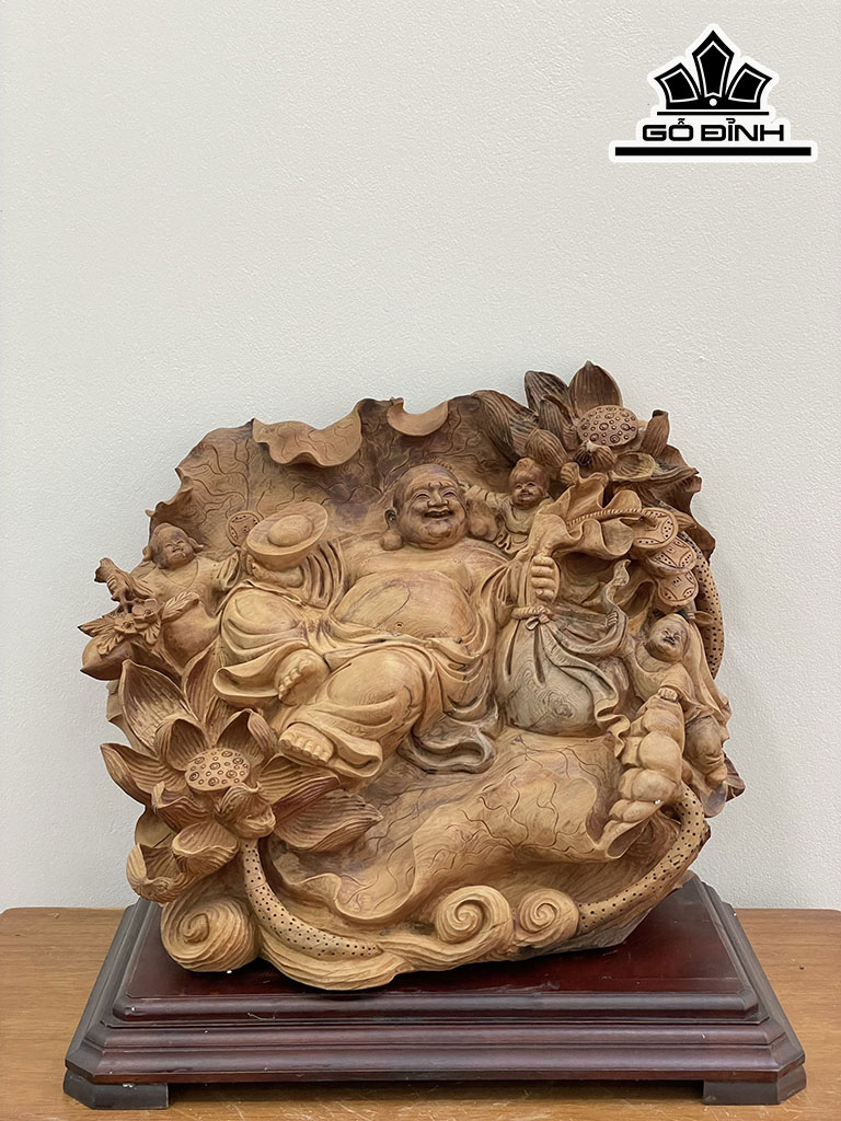 Tượng Phật Di Lặc Tam Phúc Gỗ Ngọc Am Cao 42 Ngang 51 Sâu 35 (cm)