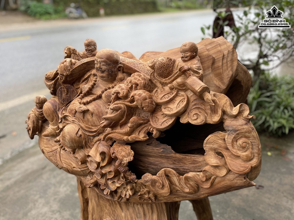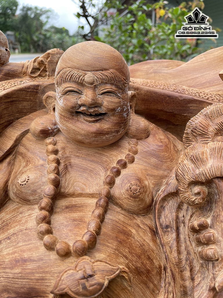 Tượng Phật Di Lặc Tam Phúc Gỗ Ngọc Am Cao 46 Ngang 78 Sâu 35 (cm)