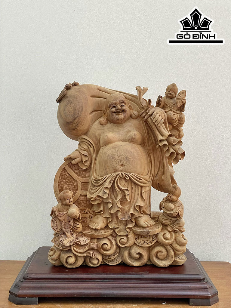 Tượng Phật Di Lặc Tam Phúc Gỗ Ngọc Am Cao 50 Ngang 35 Sâu 20 (cm)