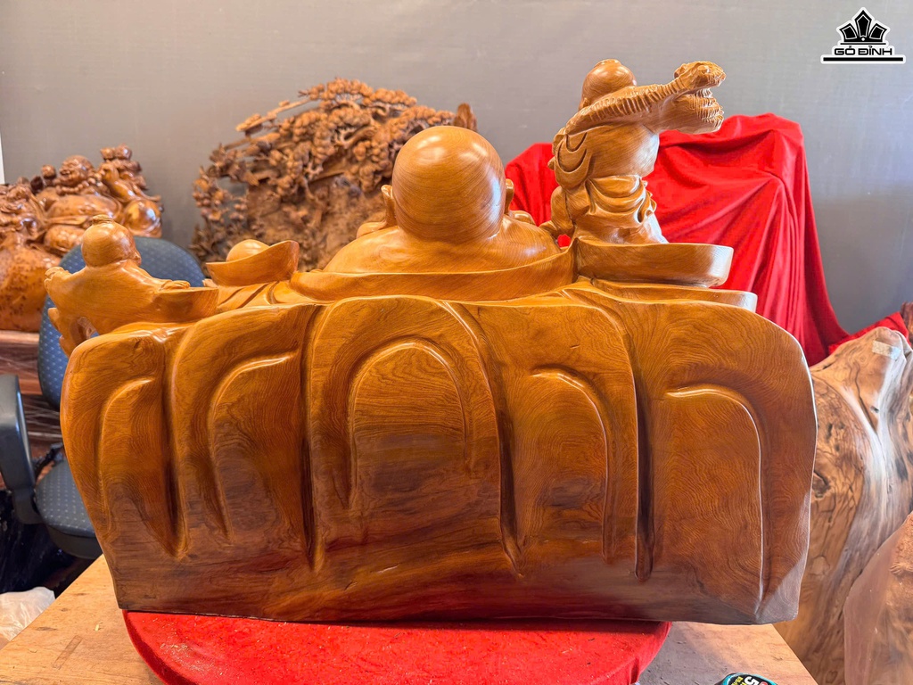 Tượng Phật Di Lặc Tam Phúc Gỗ Ngọc Am Cao 50 Ngang 65 Sâu 41 (cm) - 37kg