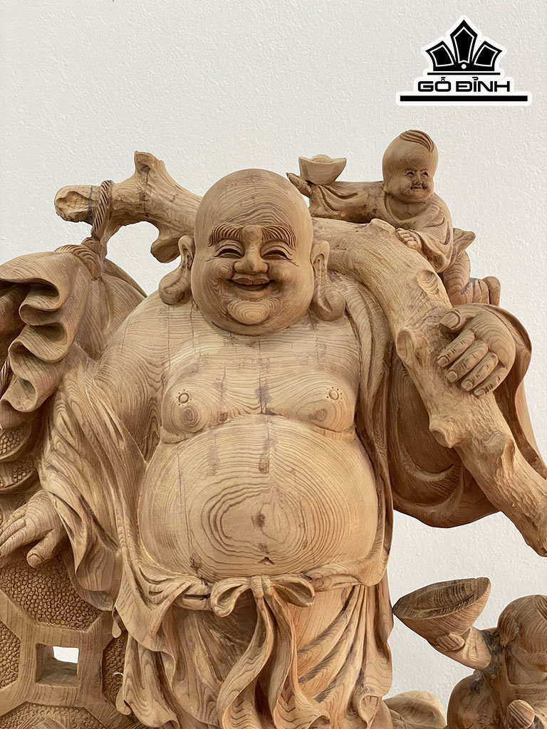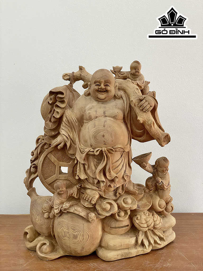 Tượng Phật Di Lặc Tam Phúc Gỗ Ngọc Am Cao 52 Ngang 42 Sâu 22 (cm)