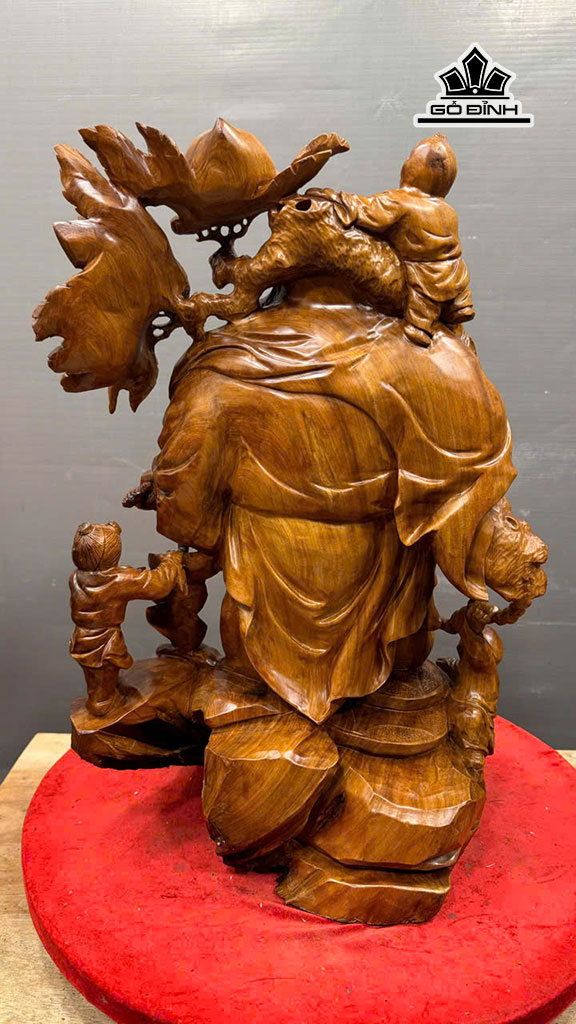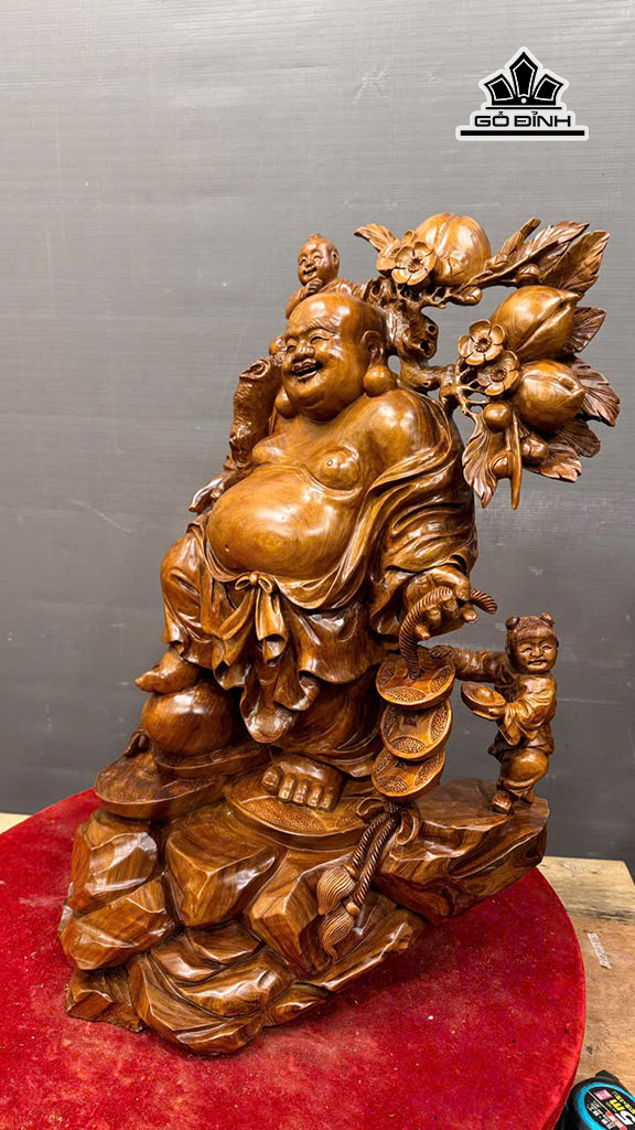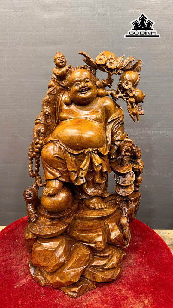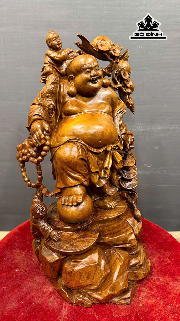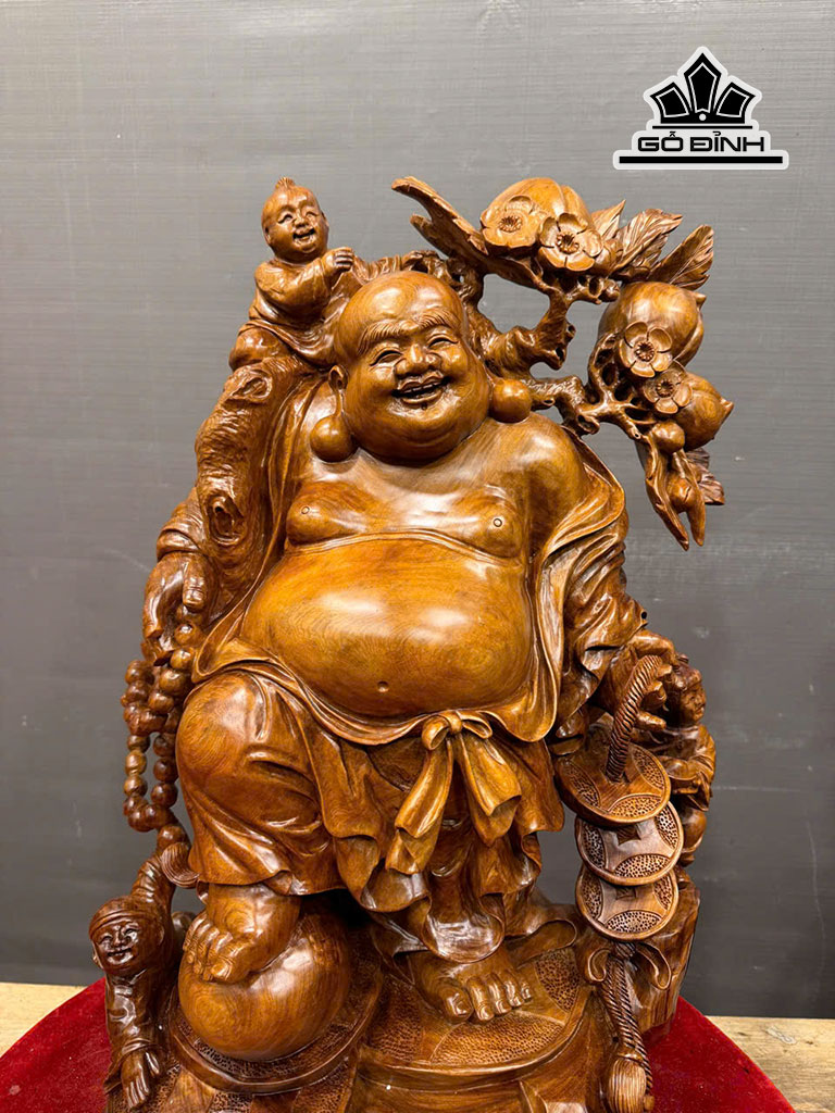 Tượng Phật Di Lặc Tam Phúc Gỗ Ngọc Am Cao 58 Ngang 36 Sâu 33 (cm)