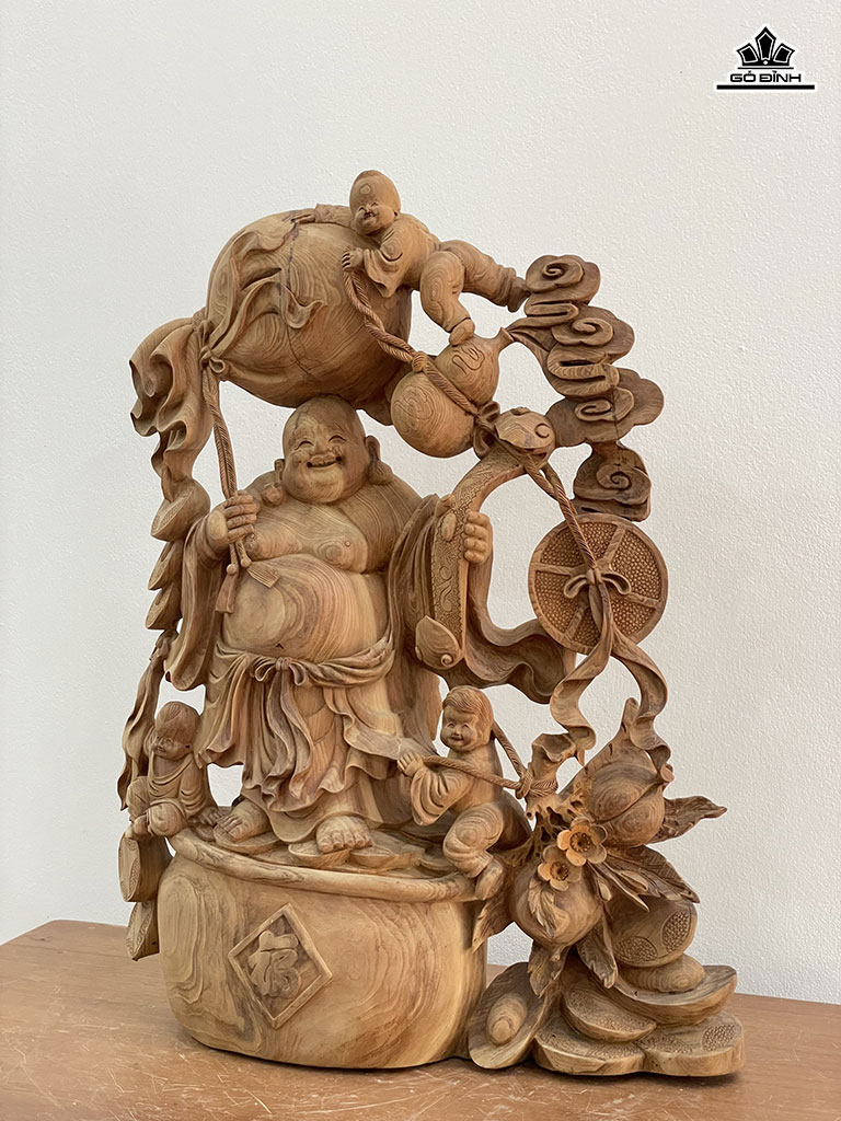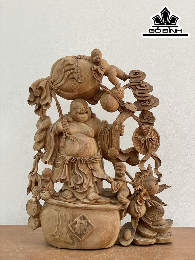 Tượng Phật Di Lặc Tam Phúc Gỗ Ngọc Am Cao 58 Ngang 45 Sâu 15 (cm)