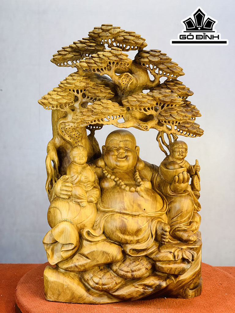 Tượng Phật Di Lặc Tam Phúc Gỗ Ngọc Am Cao 70 Ngang 41 Sâu 24 (cm)