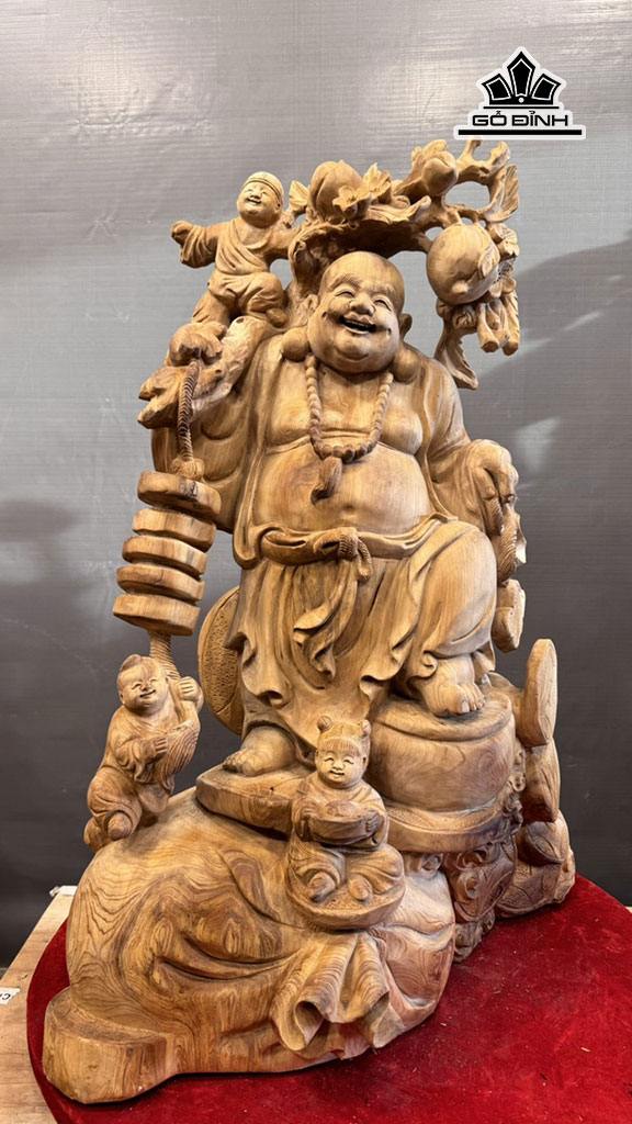 Tượng Phật Di Lặc Tam Phúc Gỗ Ngọc Am Cao 73 Ngang 46 Sâu 37 (cm) 27kg