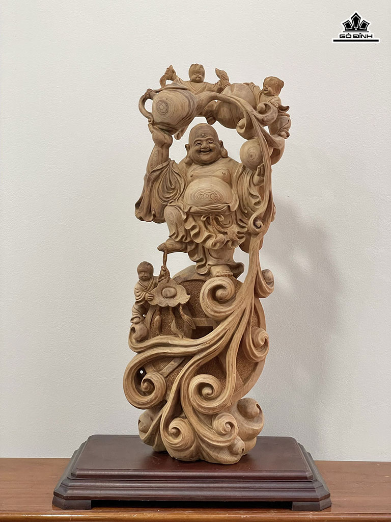 Tượng Phật Di Lặc Tam Phúc Gỗ Ngọc Am Cao 78 Ngang 30 Sâu 26 (cm)