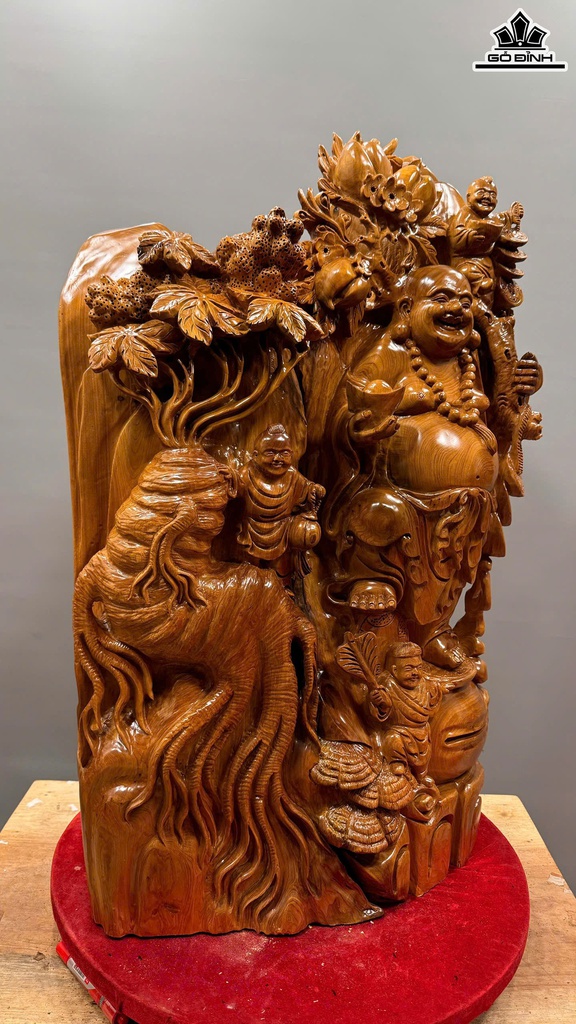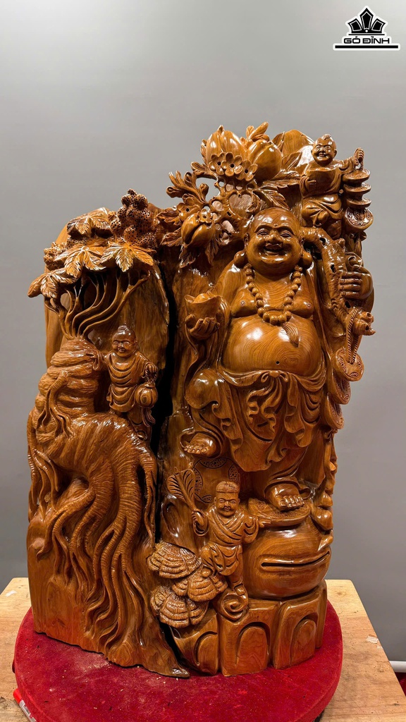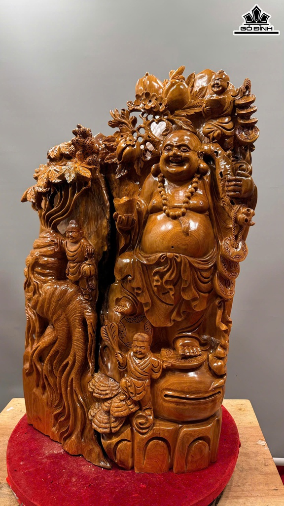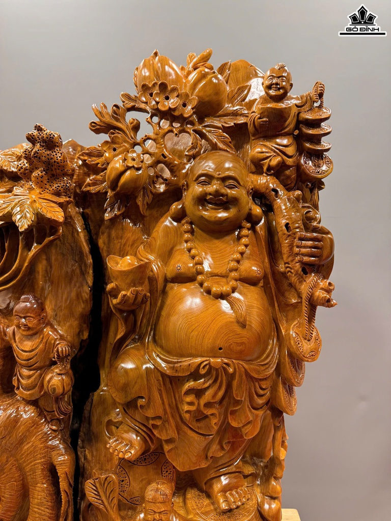 Tượng Phật Di Lặc Tam Phúc Gỗ Ngọc Am Cao 90 Ngang 60 Sâu 33 (cm) - 44kg