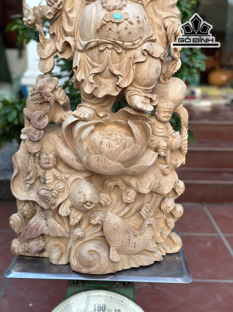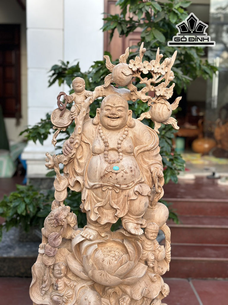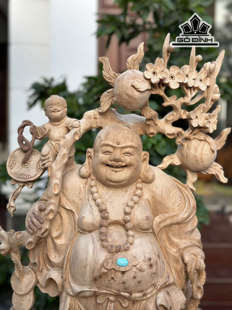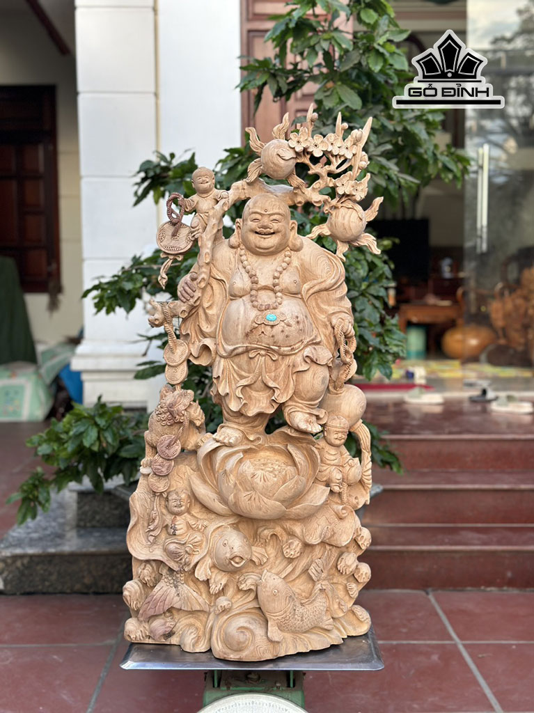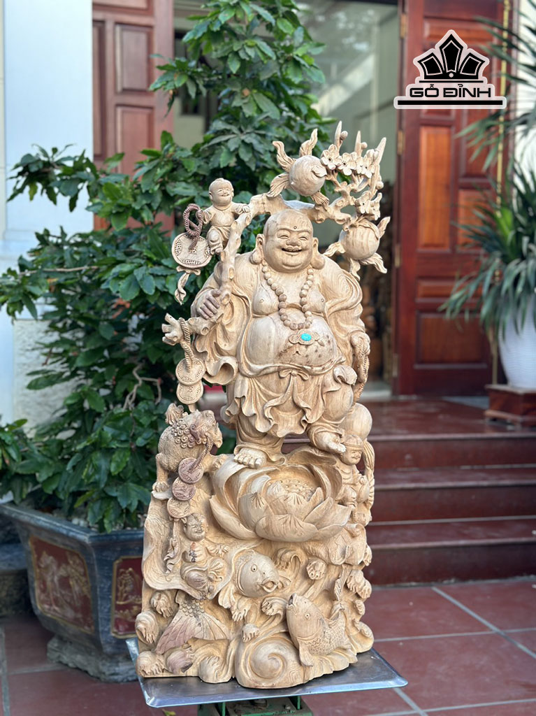 Tượng Phật Di Lặc Tam Phúc Gỗ Ngọc Am Cao 95 Ngang 45 Sâu 28 (cm)